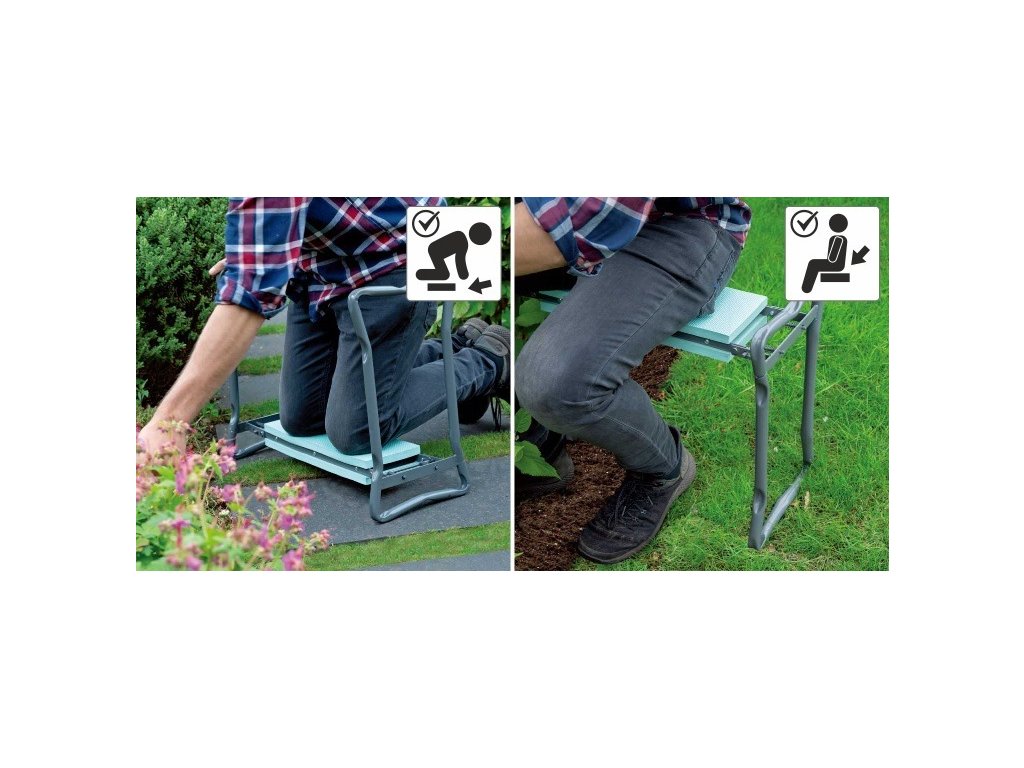 Praktická zahradní lavice a klekátko je ideální pomocník pro pohodlnou práci na zahradě. Lze ji využít jako stabilní lavici pro sezení nebo ji otočit a použít jako klekátko s měkkou podložkou pro ochranu kolen při práci u země.
