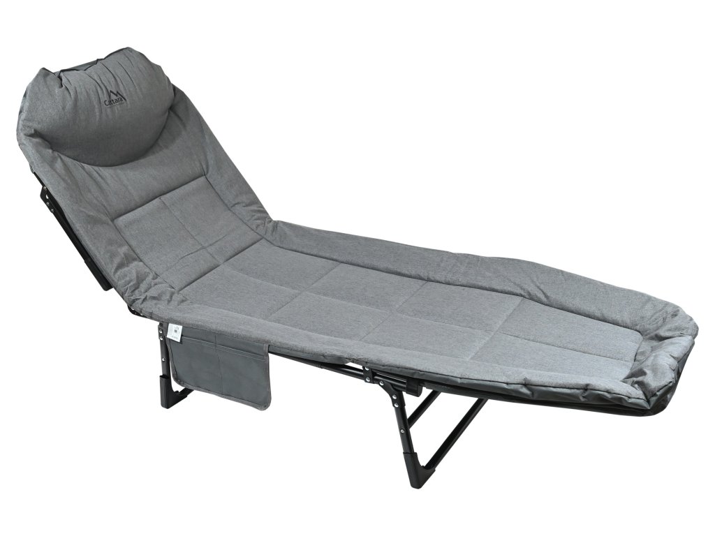 Konstrukce z oceli zajišťuje maximální zatížení až 120 kg a navíc umožňuje snadné a rychlé složení. Potah je vyroben z polyesteru s vnitřní výplní a včetně polštáře zajistí vysokou míru pohodlí.