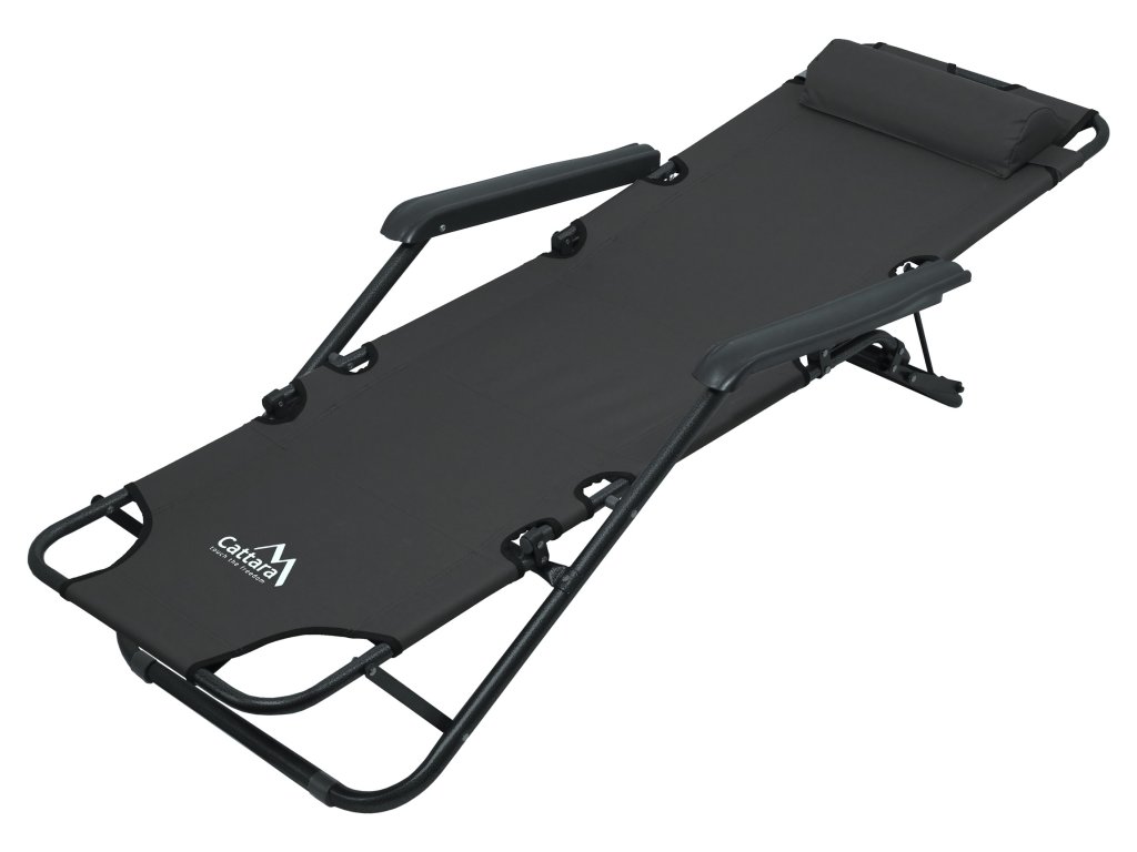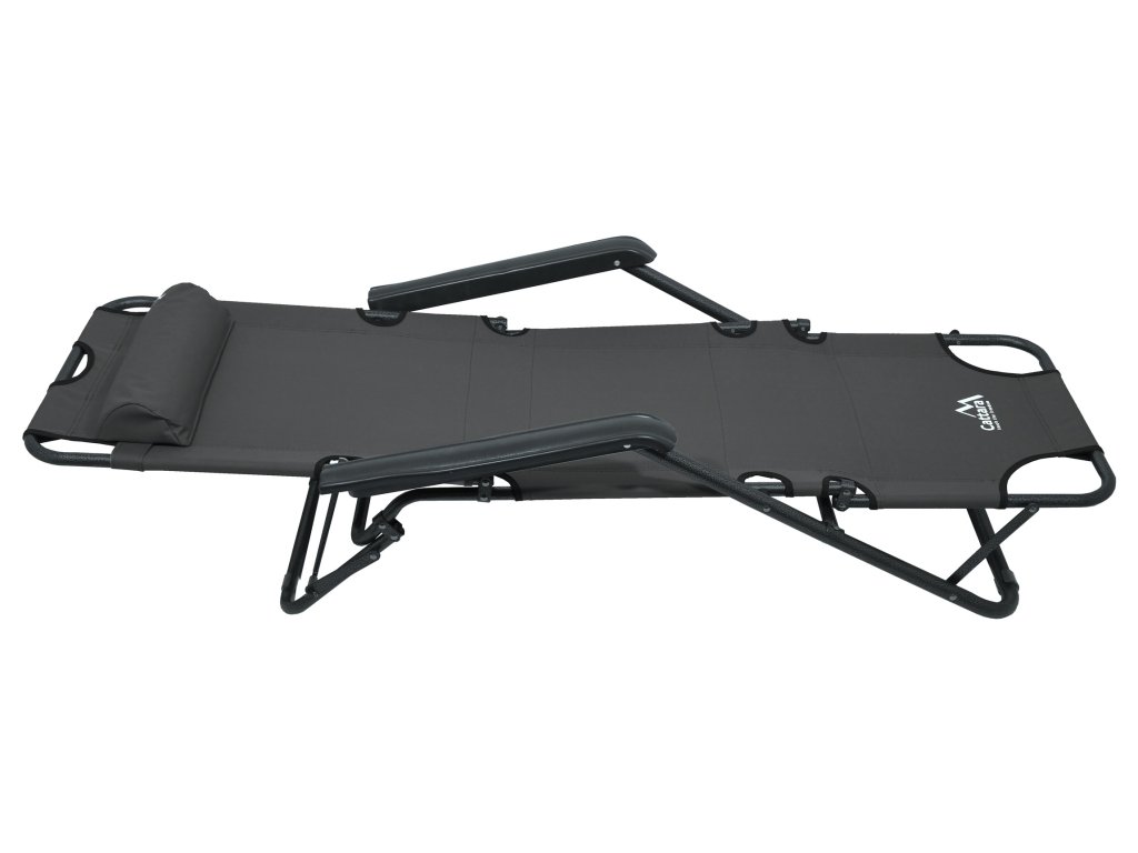 Lehátko lze používat konvenčním způsobem, nebo lze složit do podoby rybářského křesla, jež ocení kdejaký outdoor nadšenec. Lehátko je opatřené výškově nastavitelným polštářem a opěrkami rukou pro maximální pohodlí.