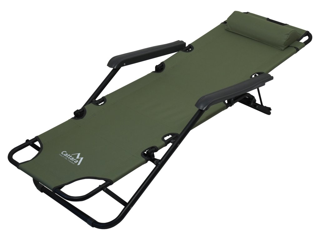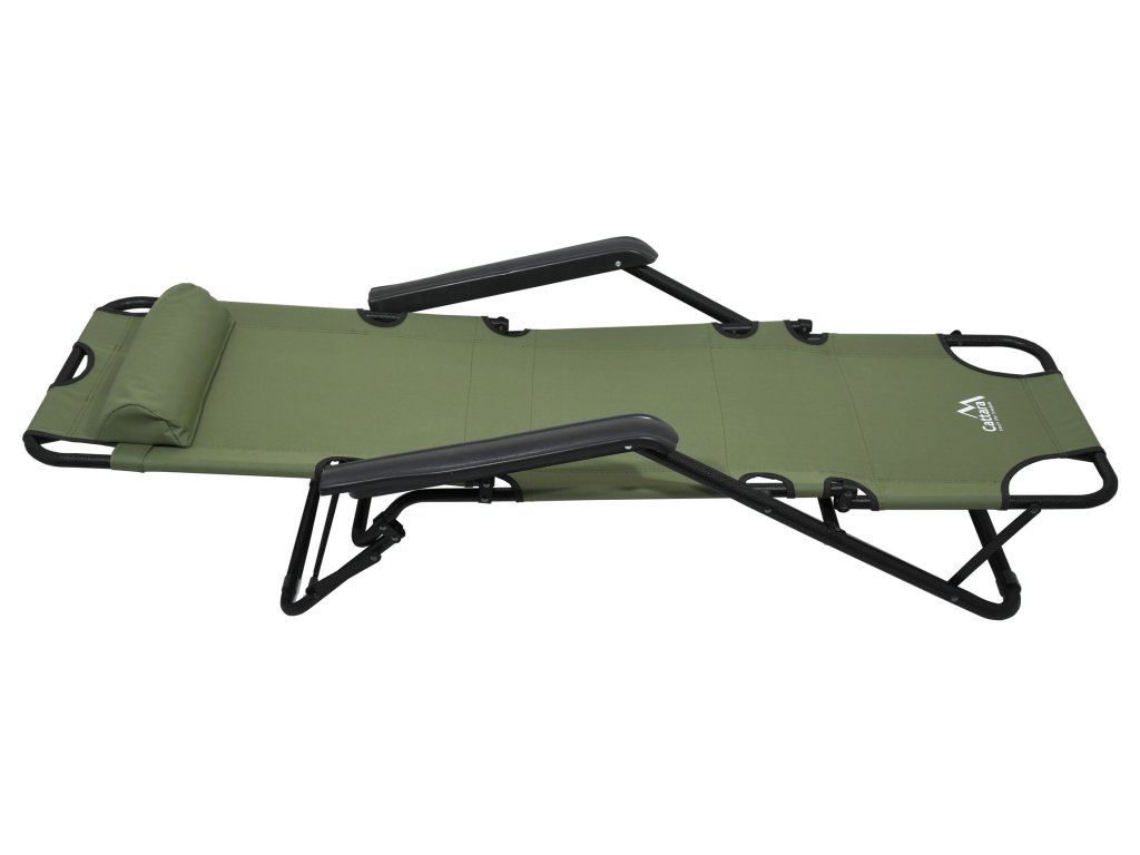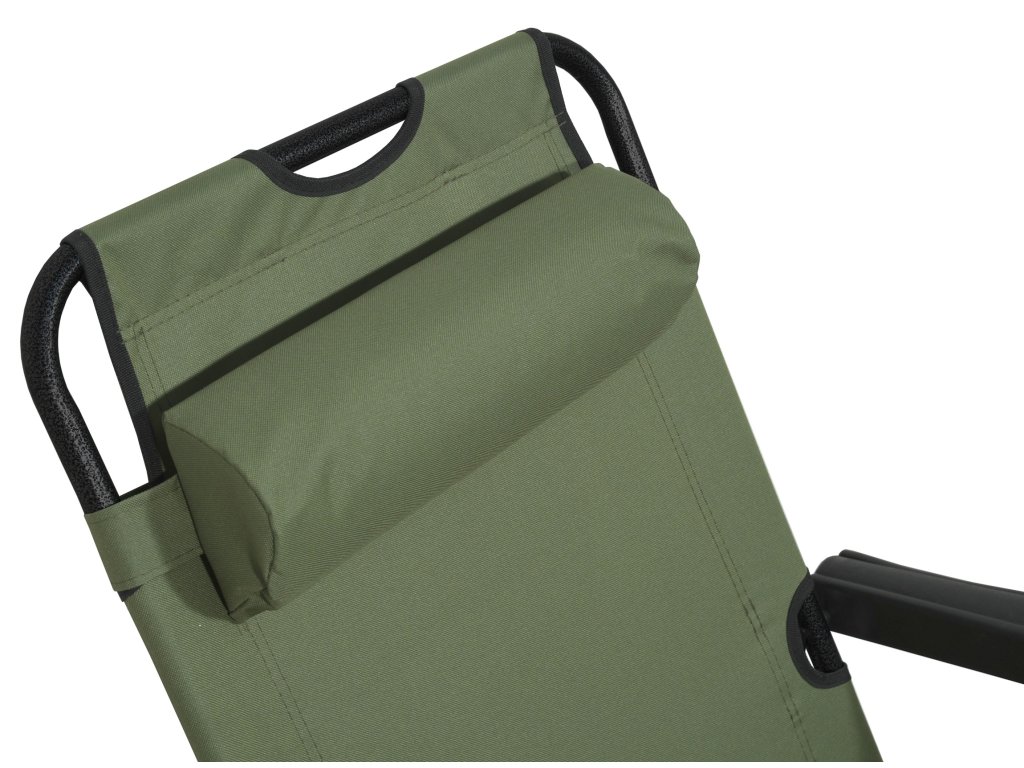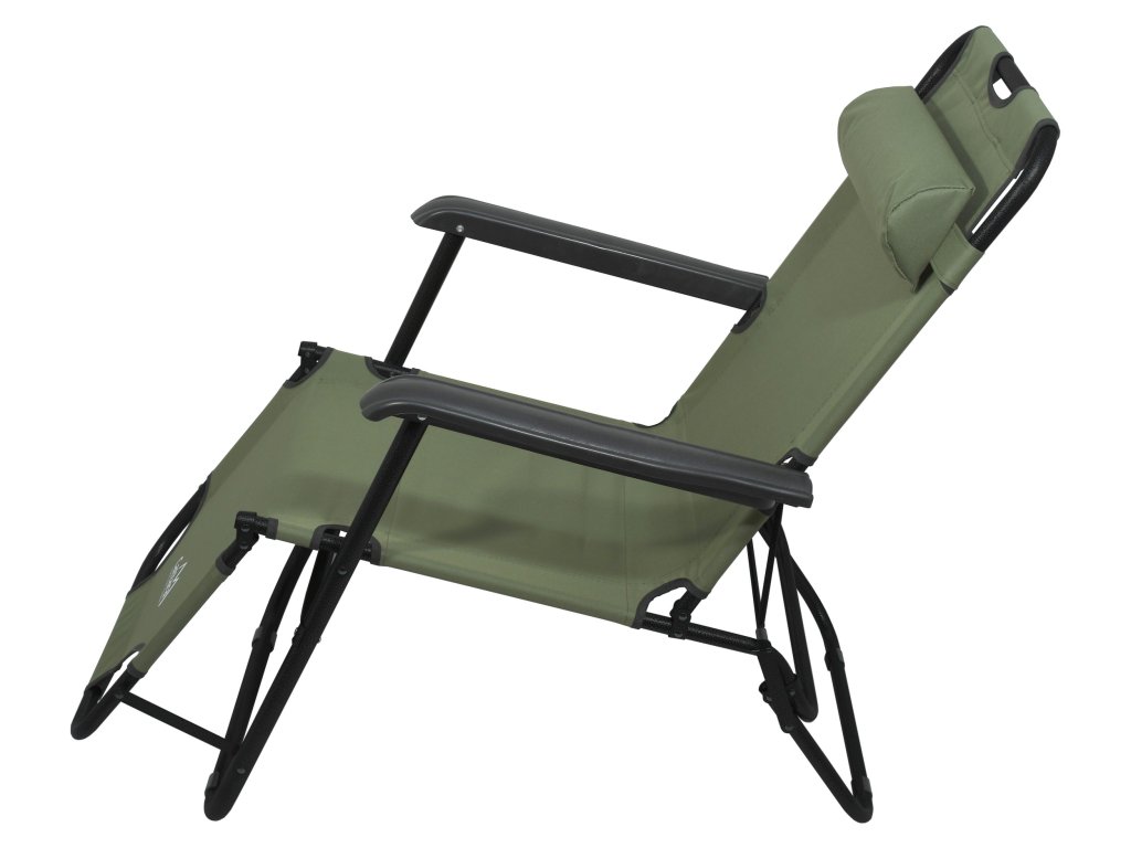 Lehátko lze používat konvenčním způsobem, nebo lze složit do podoby rybářského křesla, jež ocení kdejaký outdoor nadšenec. Lehátko je opatřené výškově nastavitelným polštářem a opěrkami rukou pro maximální pohodlí.