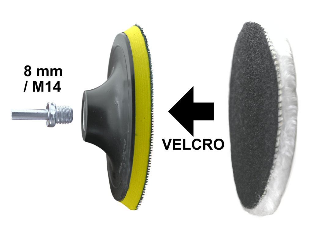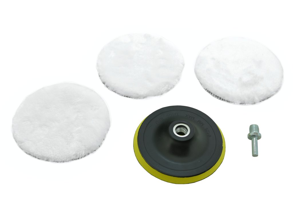 Součástí balení jsou 3 kusy chlupatých leštících kotoučů, unašecí disk a adaptér M14 / 8 mm.