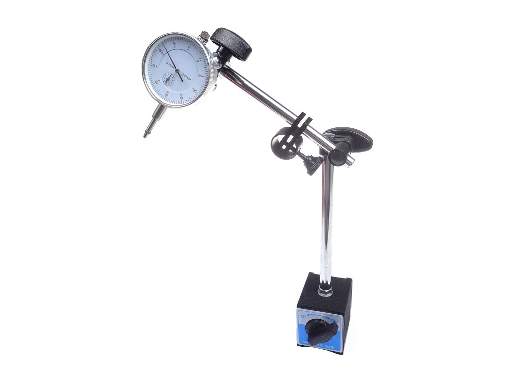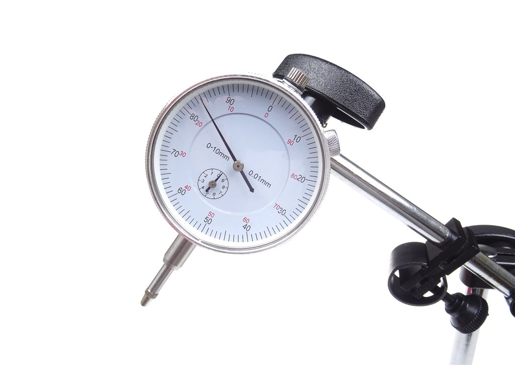 Úchylkoměr s magnetickým držákem (stativem), rozsah měření 0-10 mm, přesnost 0,01 mm; v plastovém kufříku – QUATROS QS15511.