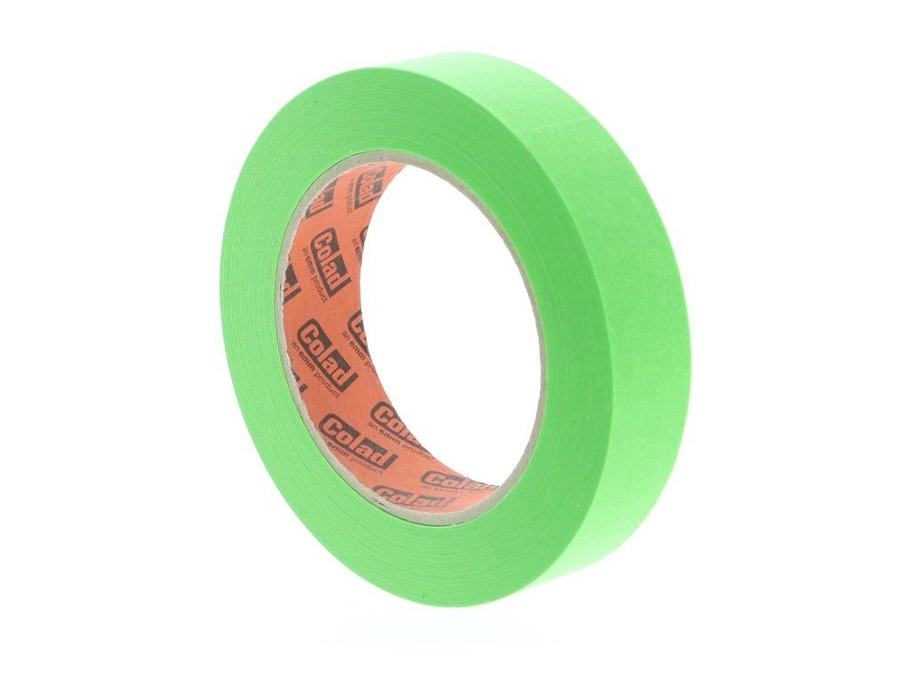 Lakýrnická maskovací páska COLAD Aqua Dynamic 900425 Délka: 50 m Šířka: 25 mm Zelená barva. Speciální páska pro maskování během lakování. Je vhodná pro laky na vodní bázi, skvěle drží na podkladech různých druhů. Extra odolnost proti vysokým teplotám do 130 °C (po dobu až 1 hodiny). Možno použít například na lakovaných dílech sušených pod infrazářičem apod. Po odstranění nezanechává žádné zbytky lepidel. Nepostradatelná pro autolakovny, autoservisy, průmyslové provozy apod.Doplňkové parametry