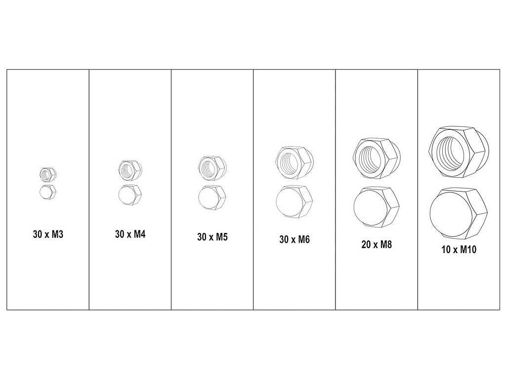 Matice metrické, kloboukové sada 150 ks