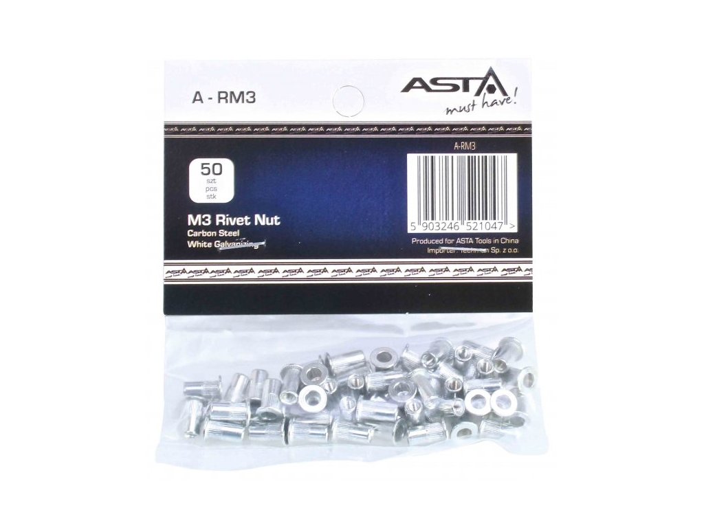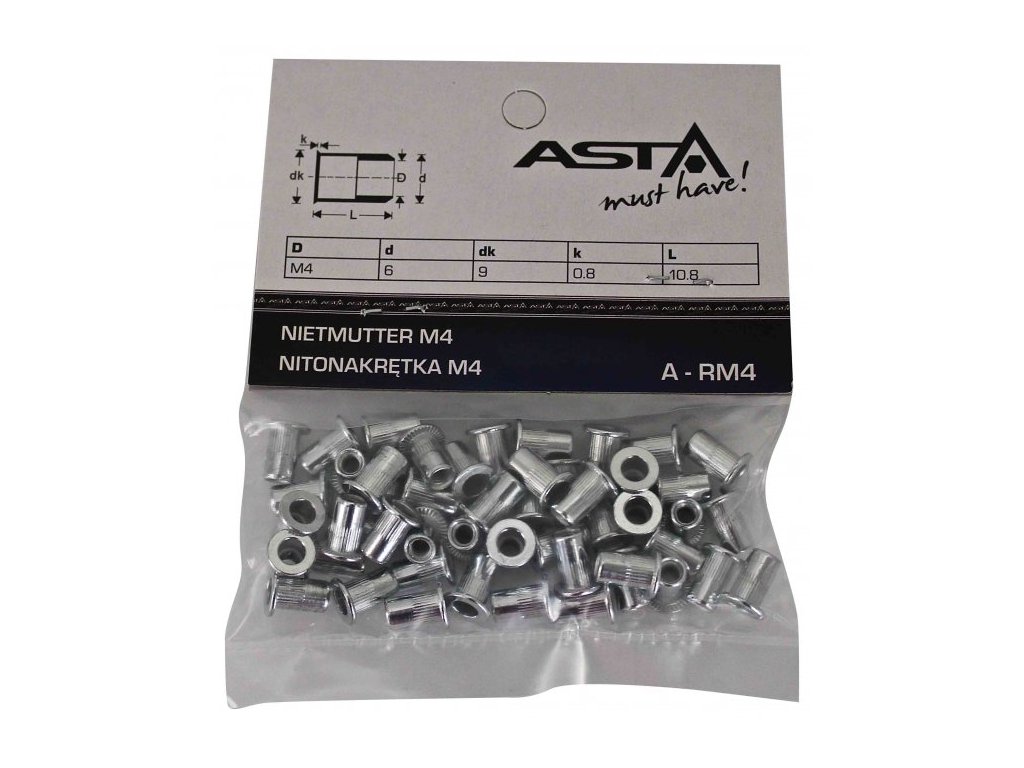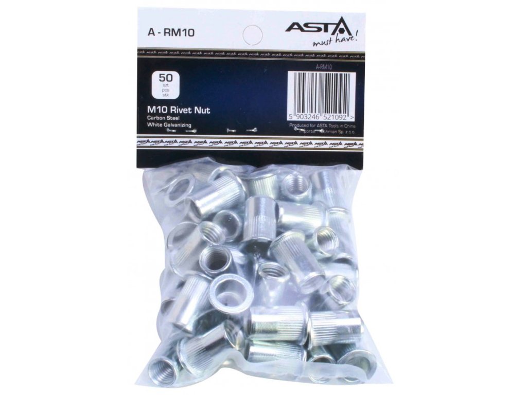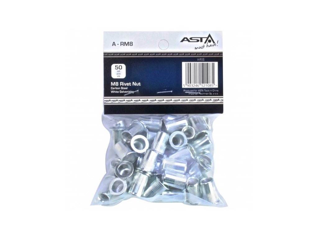 Prodej maticových nýtů, tzv. nýtovacích matic značky ASTA Standardní typ – plochá hlava Různé rozměry: vyberte si ten, který se vám hodí. Balení vždy po 50 kusech v sáčku. Vyrobeno z pozinkované uhlíkové oceli pro dlouhou trvanlivostDoplňkové parametry