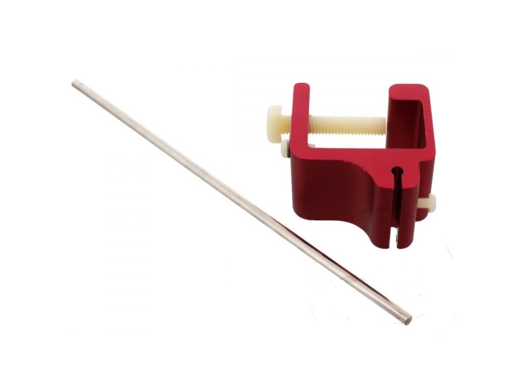 Přípravek je na mechanické bázi – upnutí pomocí kolíku, měření posuvnou tyčkou. Díky tomu se snadno obsluhuje a udržuje.