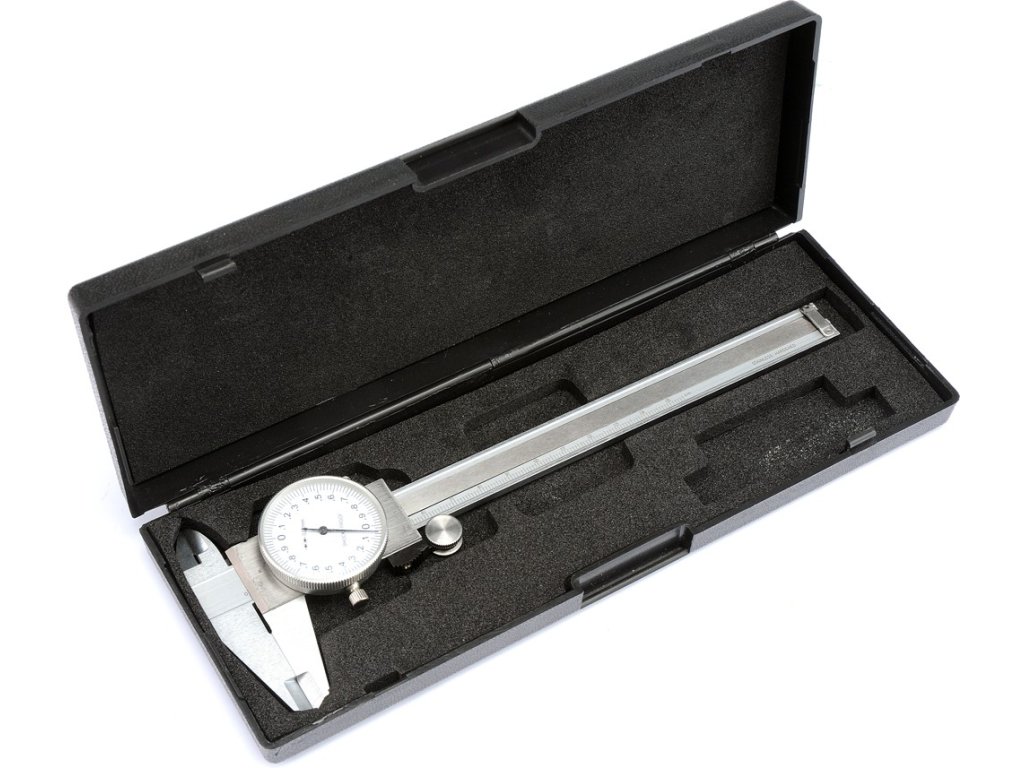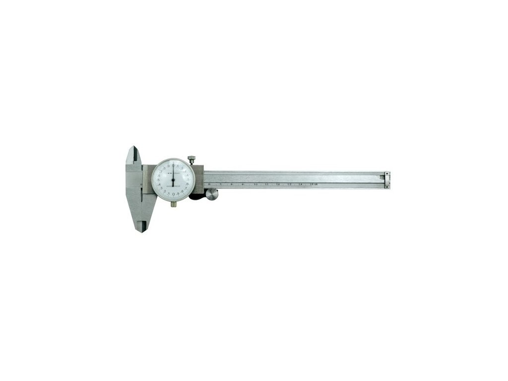 Posuvné měřítko vyrobeno z nerezové oceli s analogovým odečtem.