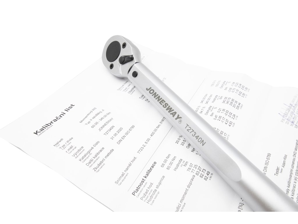 Každý tzv. dynamometrický klíč je zvlášť vyzkoušen a certifikován dle normy DIN-ISO 6789. Kalibrační protokol v českém jazyce je dodáván v balení.