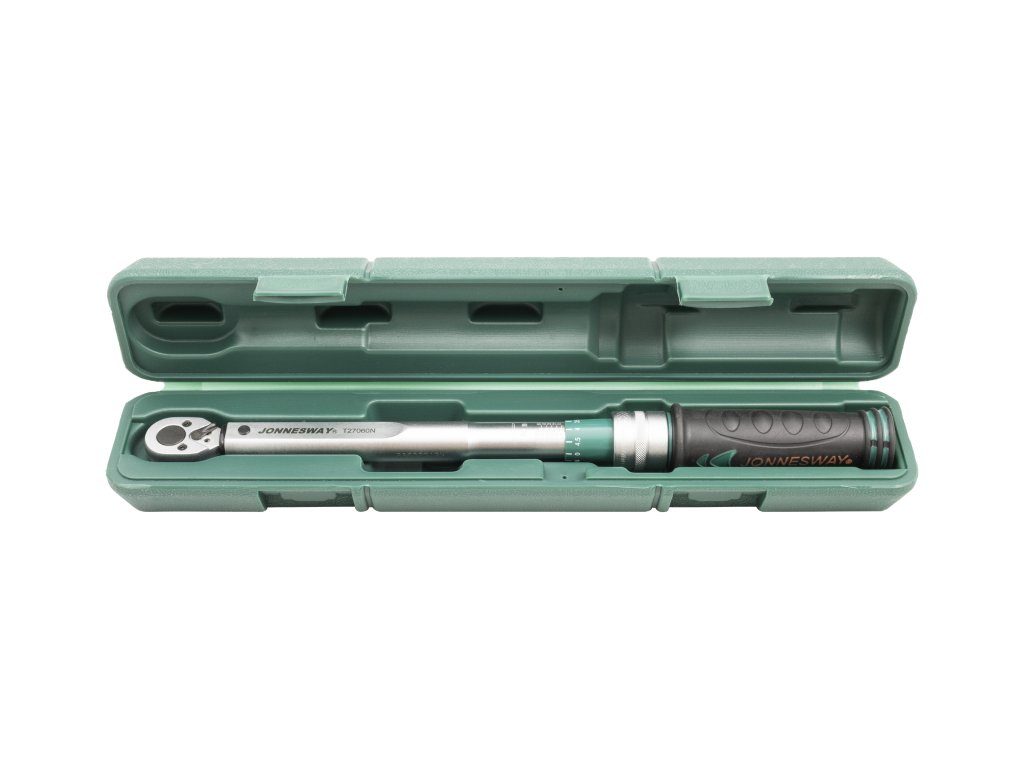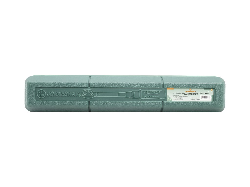 Momentový klíč JONNESWAY T27060N: kalibrační certifikát v češtině, čtyřhran 3/8“, rozsah 10-60 Nm, dodáván v plastové kazetě.