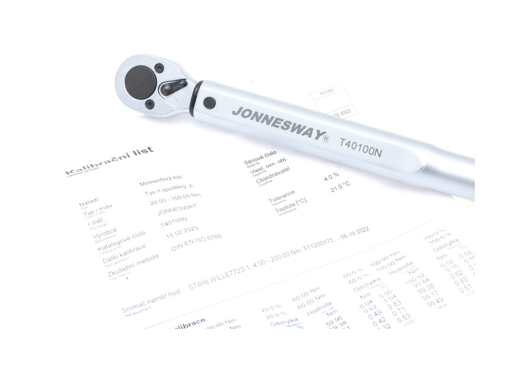 Oboustranný momentový klíč, rozsah 20-100 Nm, vodicí čtyřhran 3/8”, kalibrační certifikát v češtině, v plastové kazetě – JONNESWAY T40100N
