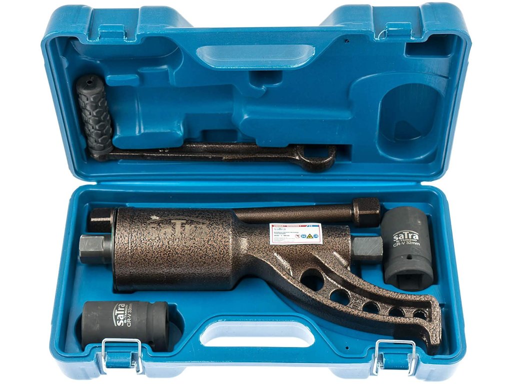 Přípravek na násobení točivého – krouticího momentu, tzv. multiplikátor SATRA S-TM6200 Multiplikátor (tzv. násobič) se používá v případech, kdy je třeba zvětšit točivý moment, např. při povolování přetažených nebo poškozených (zarezlých, zapečených) šroubových spojů, při utahování spojů s vysokým předepsaným momentem, např. na těžkých konstrukcích, v průmyslu, stavebnictví atd. Převodový poměr: 1:68 Max. výstupní točivý moment: 6200 Nm Vodicí 4hran: 1“ Obsah soupravy: - násobič kroutícího momentu - klika - prodlužovací nástavec - 2 kované hlavice (1“ / 32 a 33 mm) Dodáváno v plastovém kufříku s kovovými sponami pro snadné skladování a přenášení.Doplňkové parametry