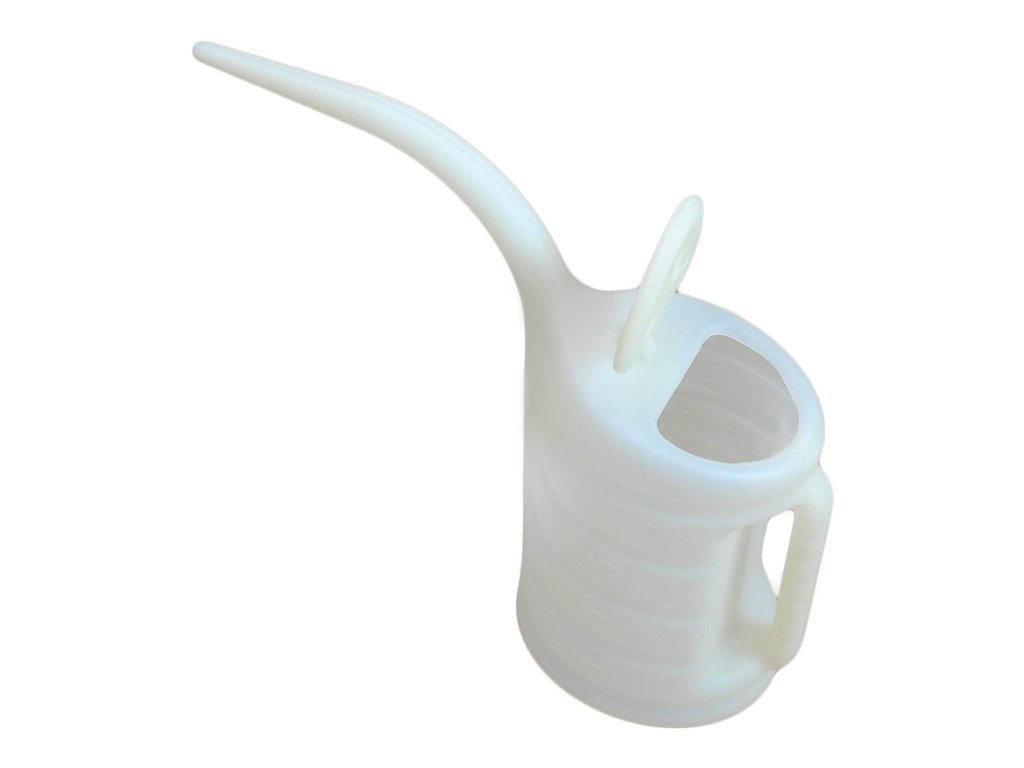 Konev – nádoba na nalévání oleje a dalších provozních kapalin objemu 6 litrů, s víčkem – ASTA A-L6MC Vysoce kvalitní polyetylénová konev určená na pohodlné plnění oleje do motoru a nalévání dalších kapalin do auta. Dlouhá hubice s úzkým hrdlem umožňuje proud nasměrovat přesně na špatně přístupná místa (např. malé nalévací otvory), díky čemuž eliminuje riziko nechtěného rozlití. Hubice napevno s nádobou – nehrozí nebezpečí protékání kapaliny v případě netěsnosti spoje. Na plnicím otvoru je víčko na pantu, které brání případné kontaminaci látky nečistotami. Množství tekutiny se snadno kontroluje pomocí stupnice na boku nádoby. Odolné vůči kyselinám, olejům a zásadám. Celková výška: 400 mm K dostání také ve dvou a čtyřlitrové variantě.Doplňkové parametry