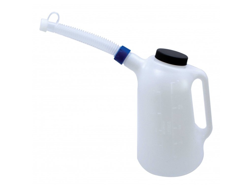 Polyetylénová konev na snadné plnění oleje do motoru a nalévání ostatních provozních kapalin do auta.