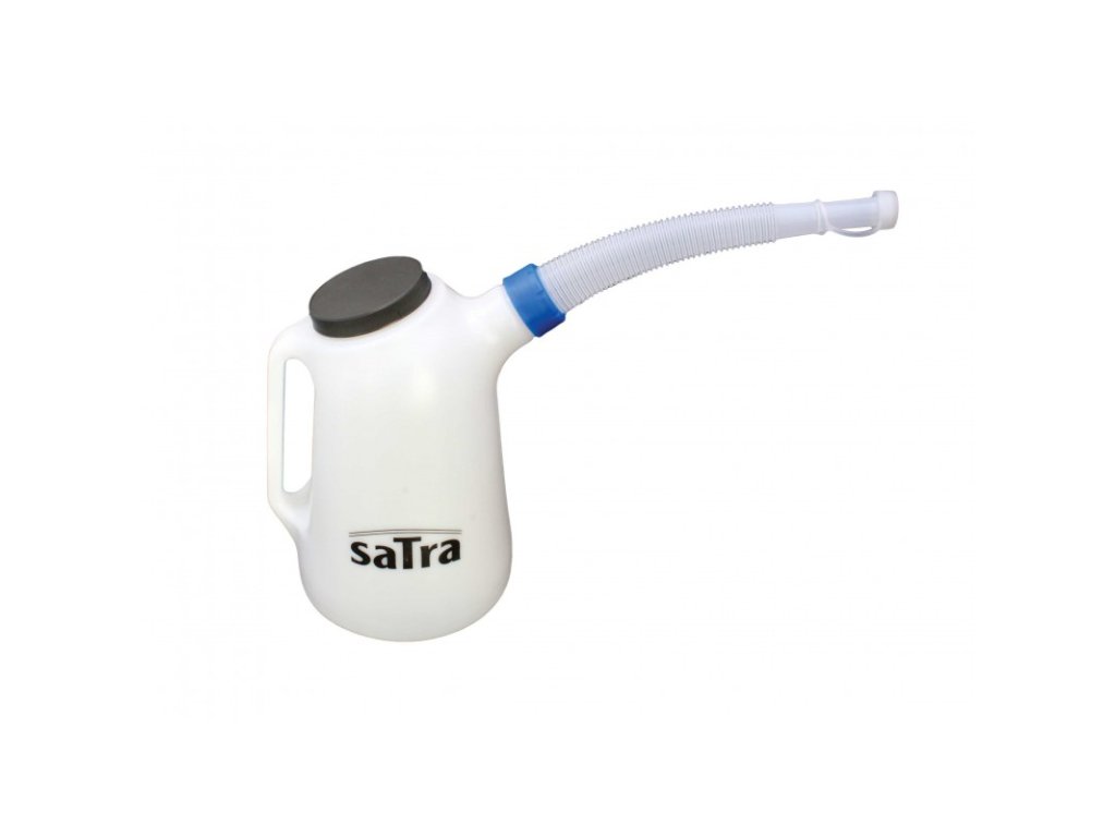 Konev – nádoba na nalévání oleje a kapalin, objem 3 litry, s víčkem a ohebnou (flexibilní) hubicí – SATRA S-3LMJ