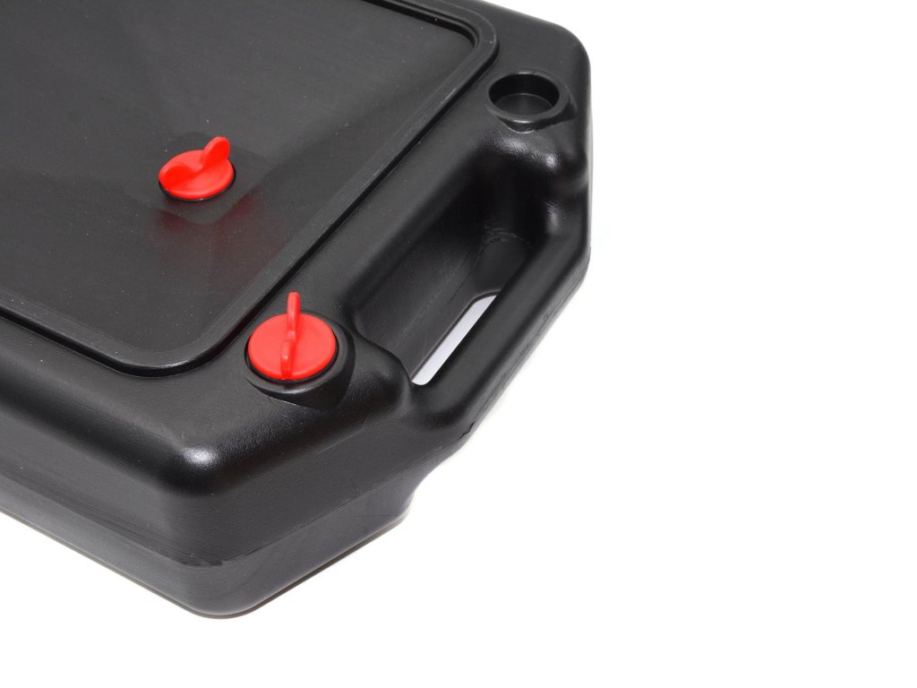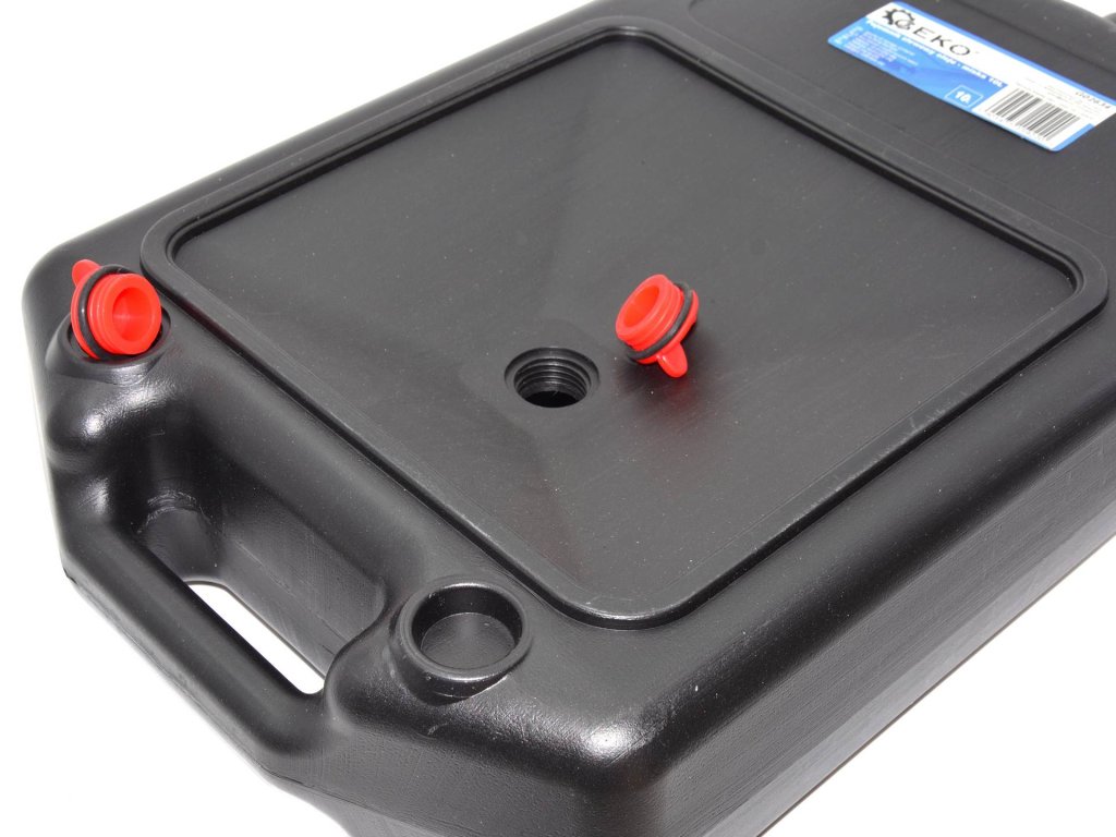 Sběrná jímka na vypouštění provozních kapalin. Vrchní strana má tvar trychtýře: zasune se pod vypouštěcí otvor a kapalina volně zteče do nádoby. Následně se zašroubují uzávěry a jímku lze snadno přenášet bez rizika rozlití obsahu. Vypouštění obsahu probíhá čelním otvorem.