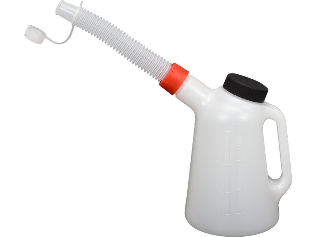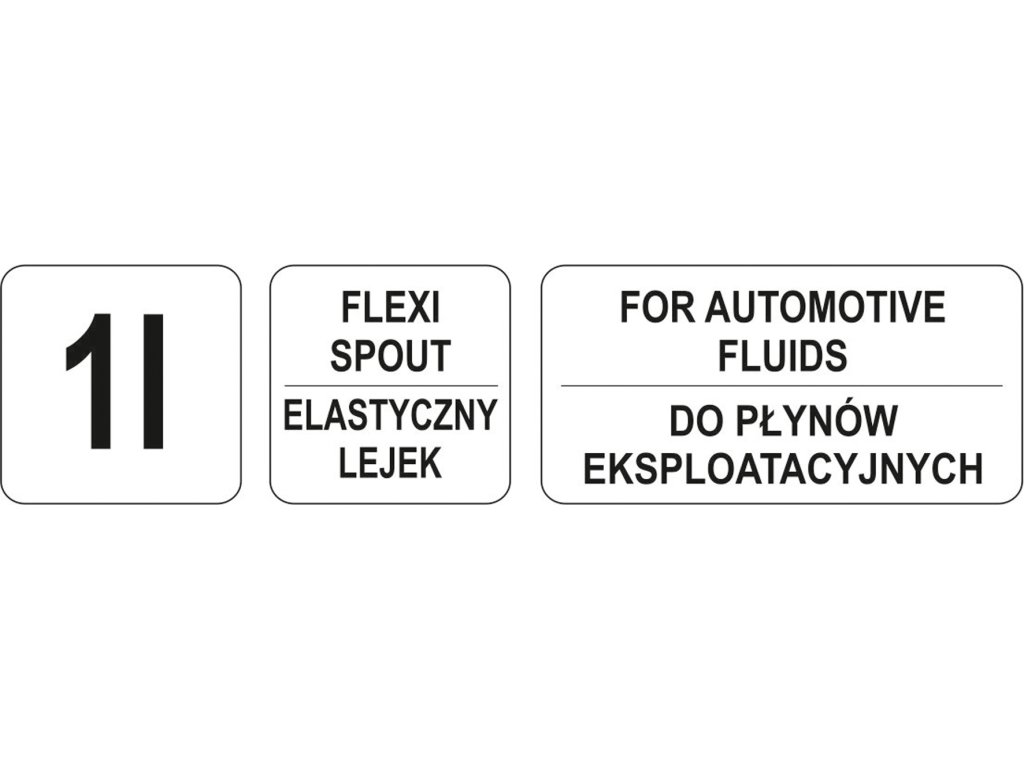 Zhotovení z odolného PE materiálu odolného vůči technickým kapalinám, opatřená šroubovacím víkem a ohebnou nálevkou.