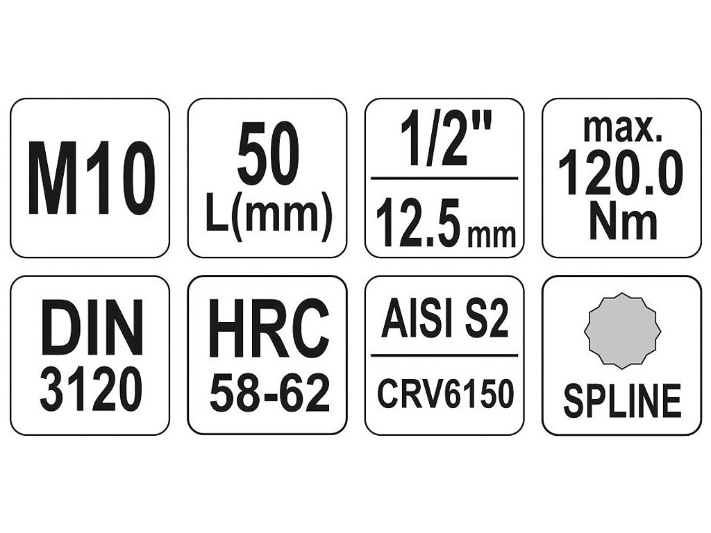 Profesionální šestihranný bit Vícezubý (SPLINE) pro 1/2" ráčnu.