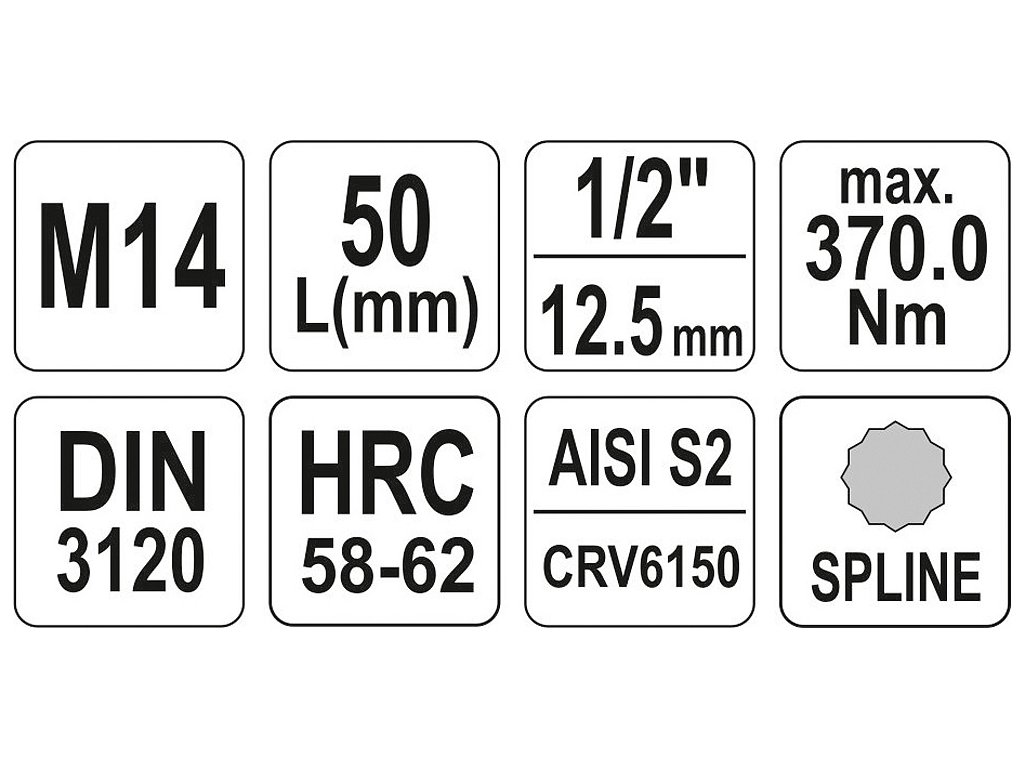 Profesionální šestihranný bit Vícezubý (SPLINE) pro 1/2" ráčnu.