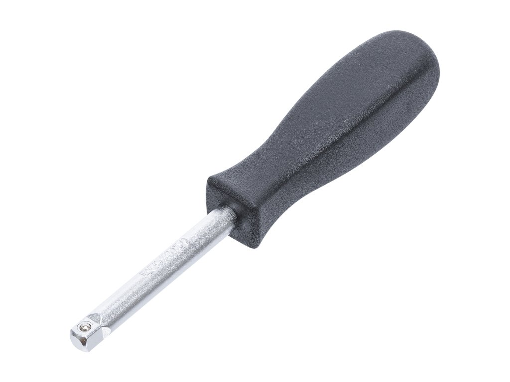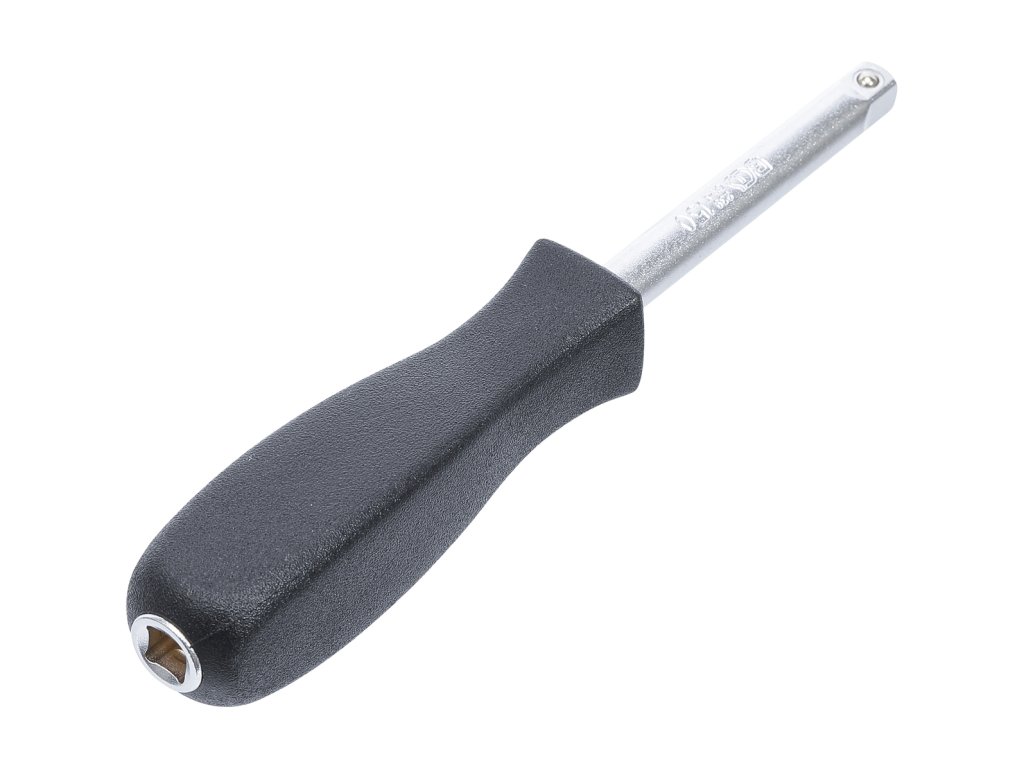 Šroubovací rukojeť s matným povrchem. Rukojeť pro hlavice 1/4“. Zadní část má otvor pro čtyřhran 1/4, takže je možné použít i jako prodloužení.