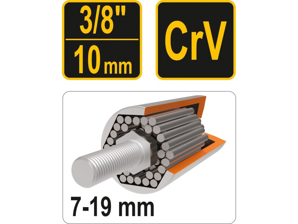 Nástavec je vyroben z vysoce kvalitní CrV oceli, vyznačující se trvanlivostí a pružností.
