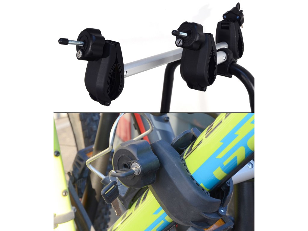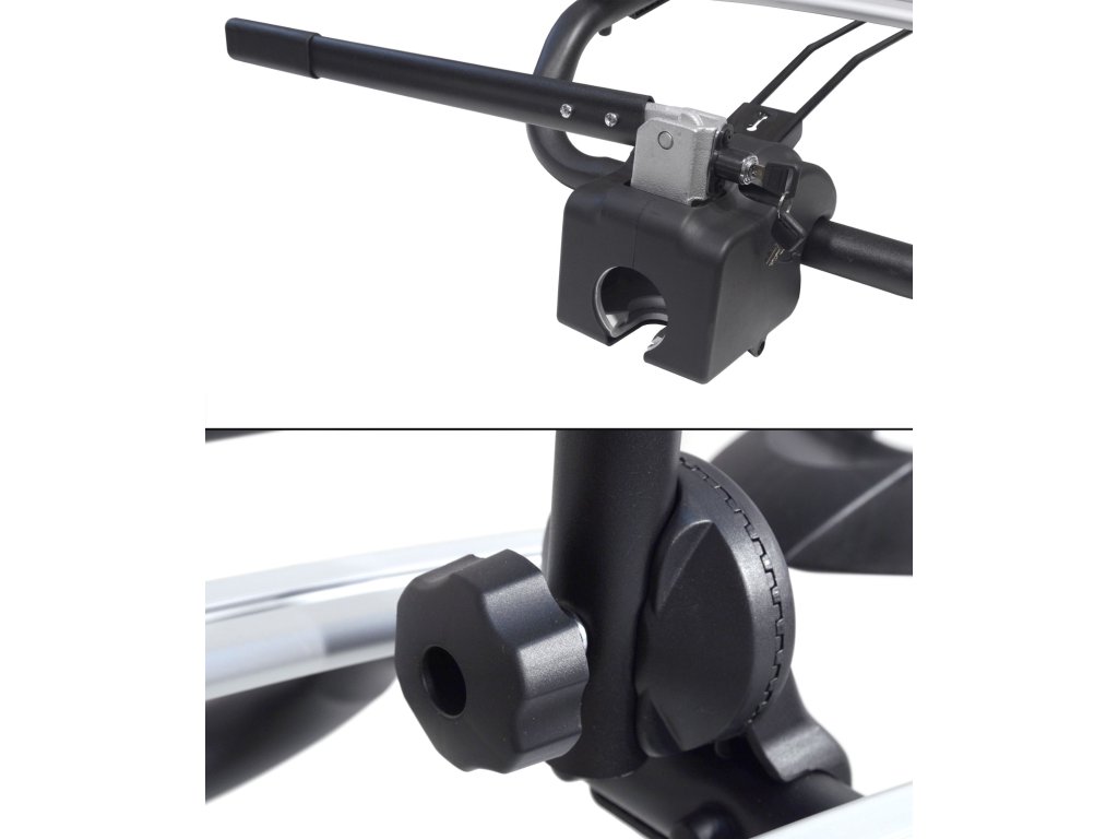 Upevnění kola do nosiče se obejde bez nářadí, provádí se uchycením držáku na rám a dotažením spon na kola, umístěných na základně. Mechanismus je uzamykací a nehrozí tak odcizení kola. Růžici pro upevnění jízdního kola je nutné důkladně dotáhnout, aby se překonal odpor prokluzu v zamčené poloze.