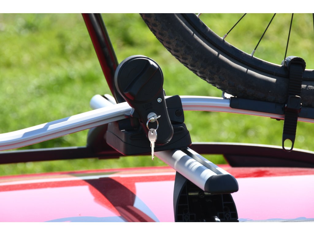 Upevnění kola se provádí jednoduše pomocí rychloupínacího držáku rámu a patek kol s upínacími přeskami. Jízdní kolo i samotný nosič jsou uzamykatelné, tím zabraňují možné krádeži.