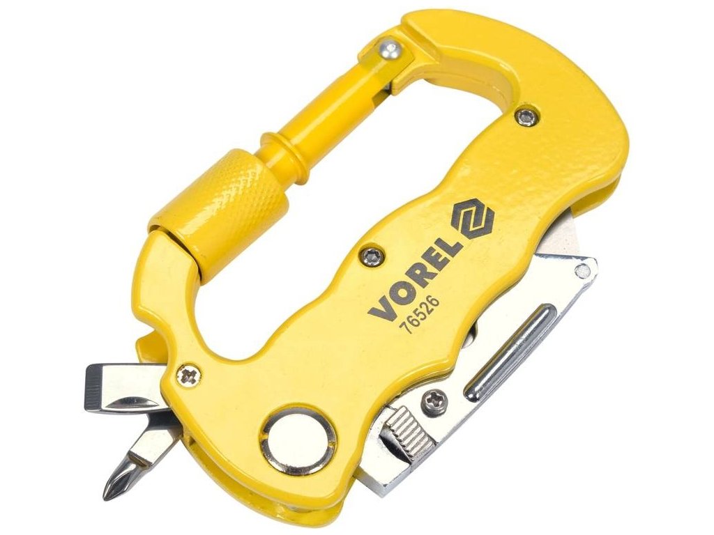 Karabina samotná je zhotovená z hliníku, o rozměrech 9,5 x 5,2 cm s tloušťkou 1,5 cm a je opatřena šroubovací pojistkou. Navíc v sobě skrývá dva nástavce a to plochý a křížový šroubovák.