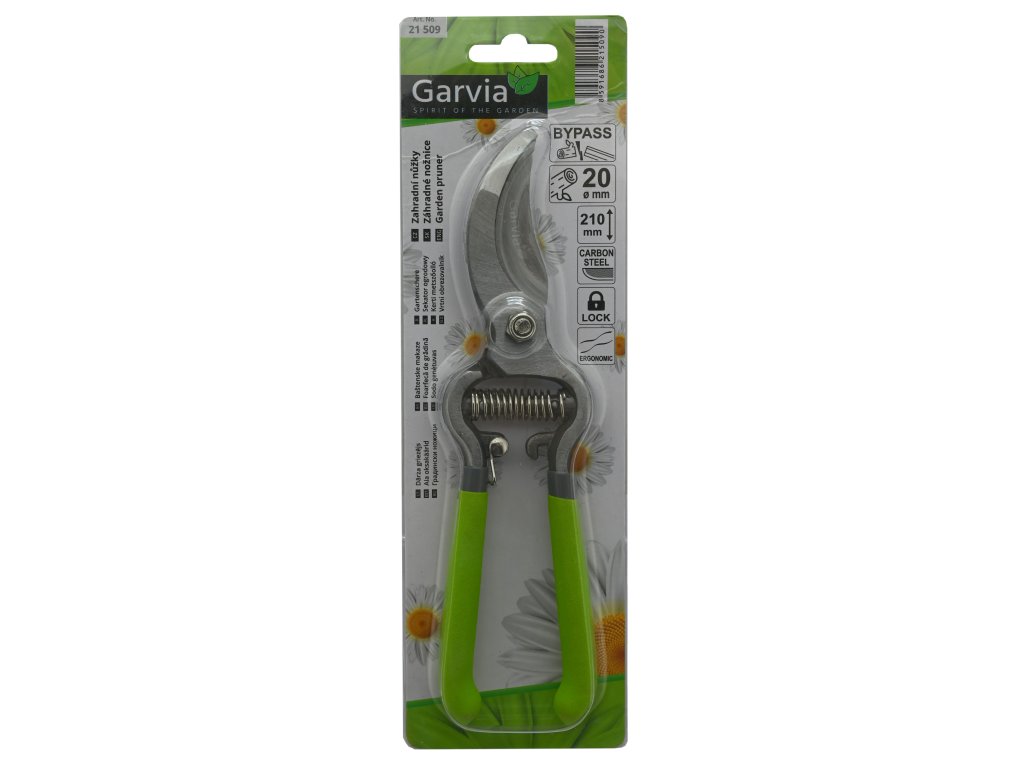 Nůžky jsou vybaveny bypassovým střihem, který pracuje na principu dvou klouzajících čepelí, což zajišťuje hladký a rovnoměrný střih bez drcení pletiv roslin. Maximální průměr střihu je 20 mm. Délka nůžek 210 mm poskytuje optimální ovladatelnost. Nůžky jsou opatřeny pojistkou pro bezpečné skladování.