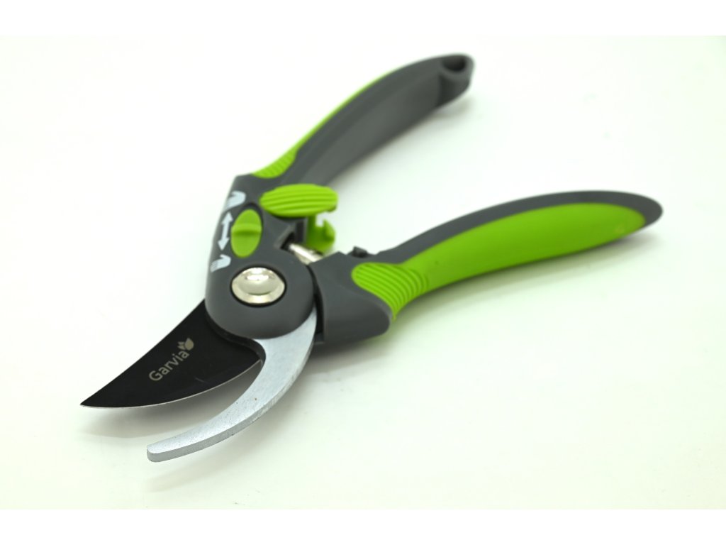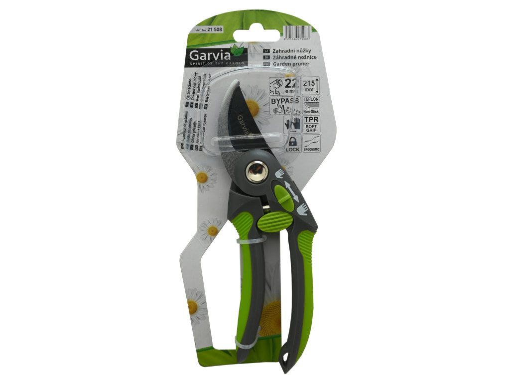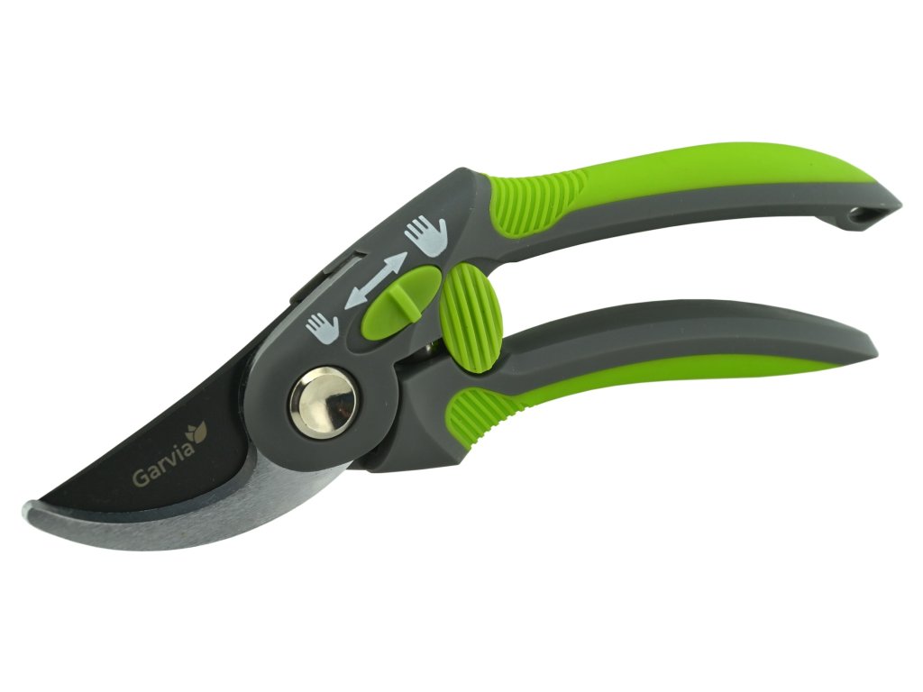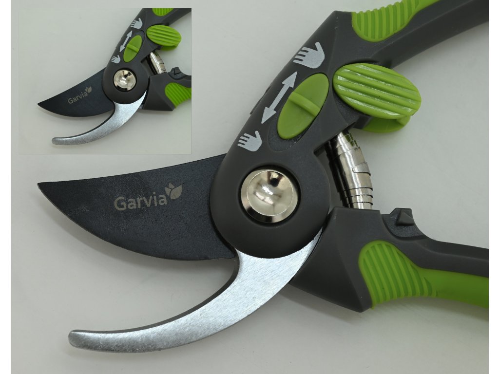 Nůžky jsou vybaveny bypassovým střihem, který pracuje na principu dvou klouzajících čepelí, což zajišťuje hladký a rovnoměrný střih bez drcení pletiv roslin. Maximální průměr střihu je 22 mm. Délka nůžek 215 mm poskytuje optimální ovladatelnost. Nůžky jsou opatřeny pojistkou pro bezpečné skladování. Navíc je součástí nůžek přepínač, kterým lze zvolit šířku rozevření nůžek, dle velikosti ruky.