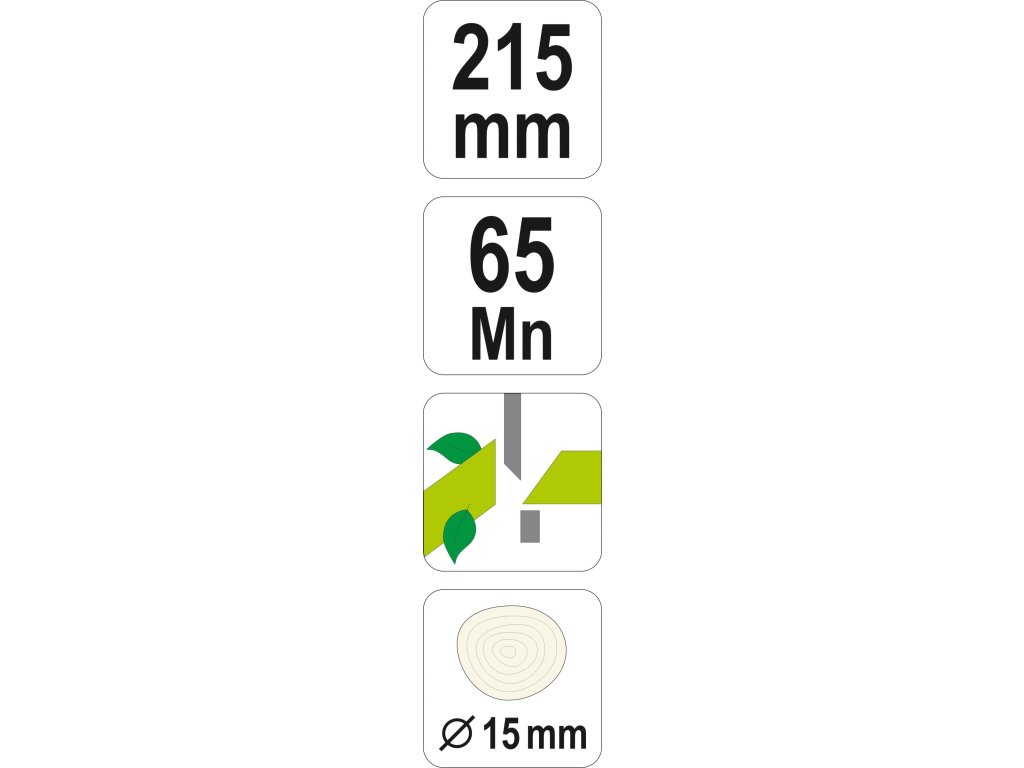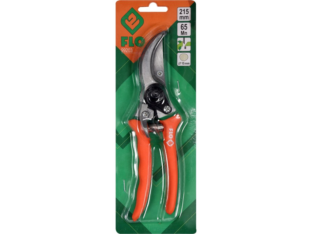 Ruční zahradní nůžky,z materiálu 65Mn se šikmím střihem o celkové délce 205 mm průměru střihu do 15 mm, určené ke střihu větví či jiného rostlinného materiálu s protiskluzovou rukojetí pro bezpečné držení.