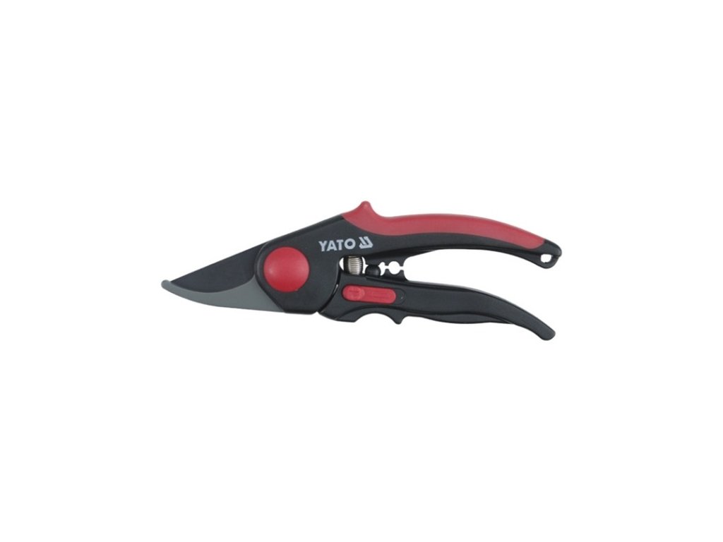 Ruční zahradní nůžky,čepel z Japonské ocely SK5 ostří potažené PTFE se šikmým střihem o celkové délce 210 mm průměru střihu do 19mm, určené ke střihu větví či jiného rostlinného materiálu s protiskluzovou rukojetí pro bezpečné držení.