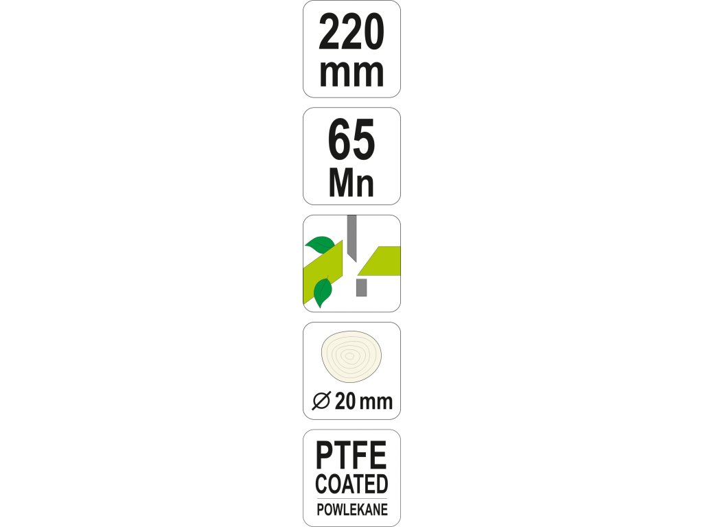 Ruční zahradní nůžky,z materiálu 65Mn vrchní čepel potažena PTFE se šikmím střihem o celkové délce 215 mm průměru střihu do 20 mm, určené ke střihu větví či jiného rostlinného materiálu s protiskluzovou rukojetí pro bezpečné držení.