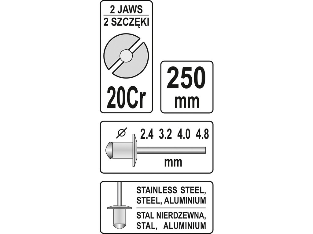 | rozměr nýtů | 2,4; 3,2; 4; 4,8 mm |