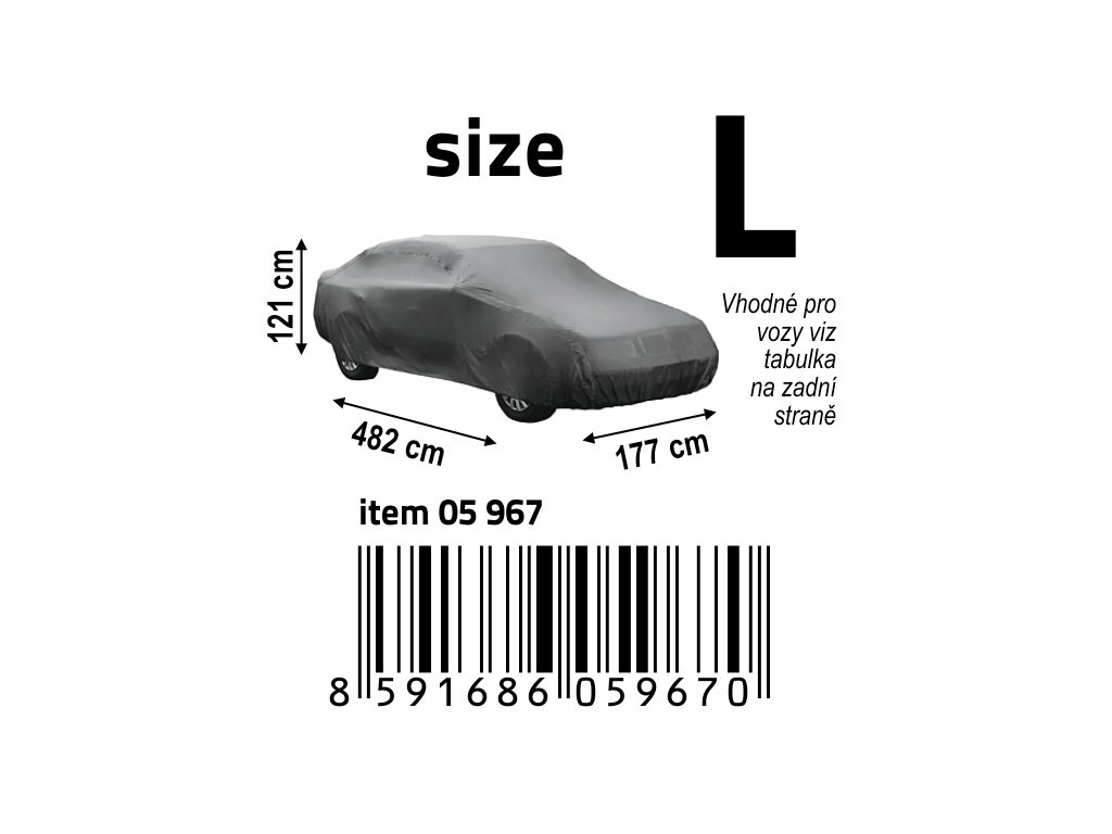 Prodyšná plachta na celý vůz. Zabraňuje mírné vlhkosti a námraze, vhodná proti znečištění vozu. Chrání karoserii vozidla proti povětrnostním vlivům a před UV zářením.