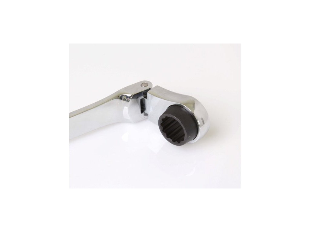 Samostatný prodej kloubových, očkových ráčnových klíčů ASTA 12hranný profil (očko i ráčna). Extra dlouhé – vhodné pro přístup i do extrémně špatně dosažitelných míst (např. motorové prostory, podvozky atd.). Asymetrické provedení: očko a ráčna jsou na opačných stranách klíče. Ráčna má 72 zubů, je umístěna na kloubu otočném o 180 °. Kvalitní provedení: klíč je vyroben z chrom-vanadové (Cr-V) oceli, ráčna z chrom-molybdenové (Cr-Mo) oceli.Doplňkové parametry