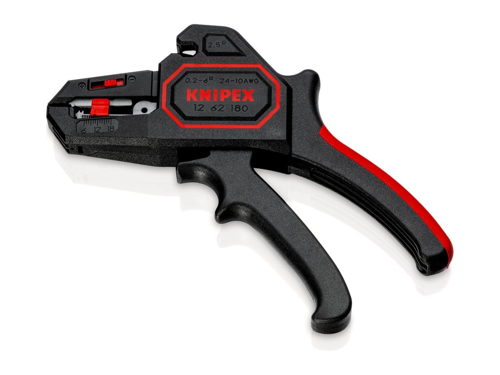 Samostavitelné – automatické kleště na odizolování elektrických vodičů průměru 0,2-6,0 mm2, se štípacími čelistmi – KNIPEX 12 62 180