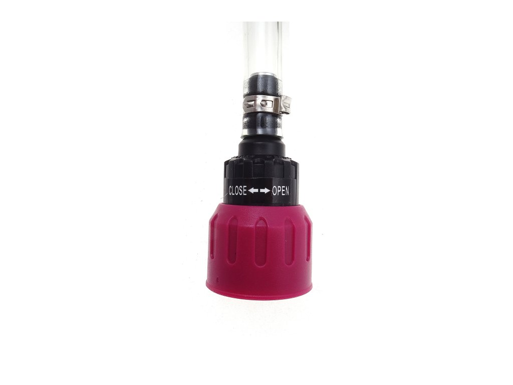 Hadice se na tělo odsávačky šroubuje a má integrovaný ventil (otevřeno/zavřeno), které při manipulaci omezuje zbytečné odkapávání. Konec hadice má navíc víčko pro úplné uzavření.
