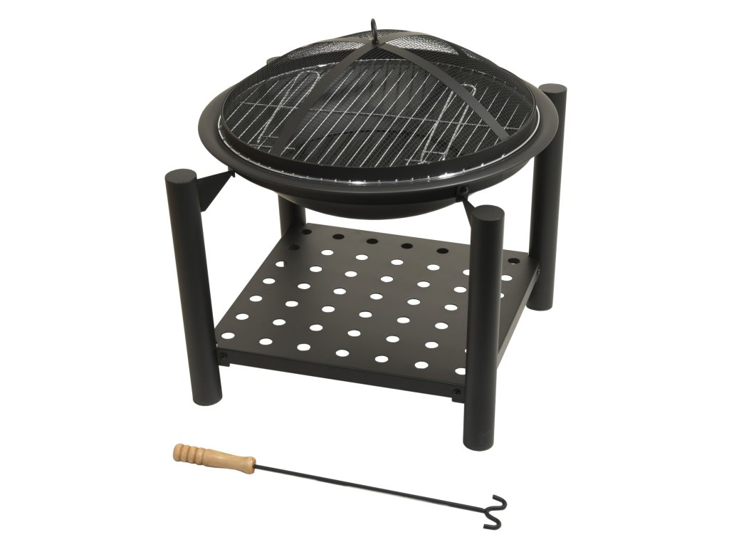 Konstrukce ohniště je vyrobena z kvalitní oceli s vysokoteplotním černým nátěrem. Pro grilování je ohniště opatřeno ocelovým roštem průměru 48 cm. Na popel je ohniště opatřeno ocelovou mřížkou se smaltovanou povrchovou úpravou.