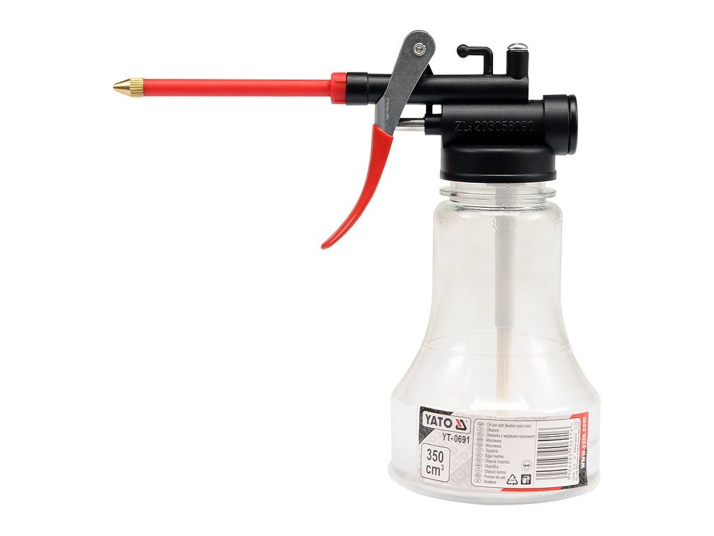 Tlaková pumpička je vybavena flexibilním krčkem z měkkého plastu pro snadnější aplikace v méně přístupných místech. Tryska je z kovu a vytváří silný a přesný průtok řízený plynulou spouští.