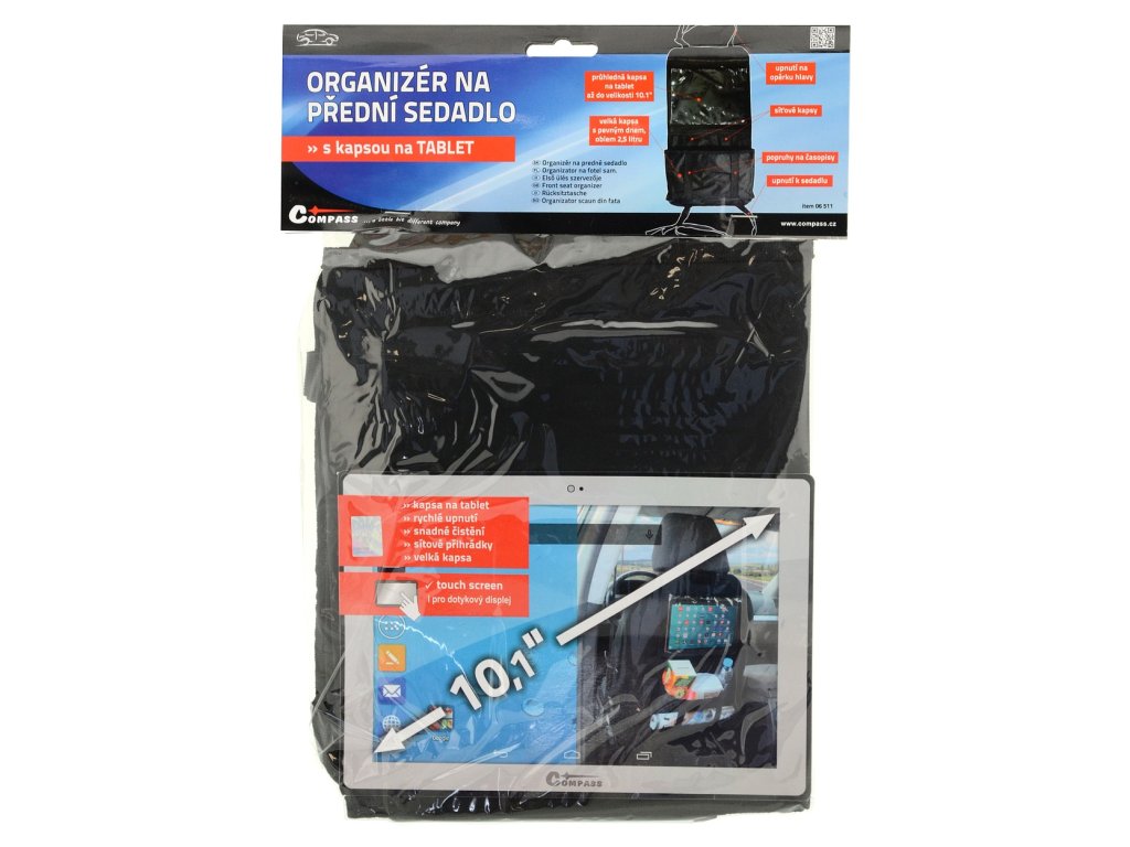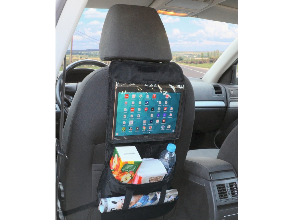 Organizér k připevnění na zadní stranu předního sedadla. Upevnění horní části pomocí popruhů za opěrku hlavy, spodní části popruhy za sedadlo.