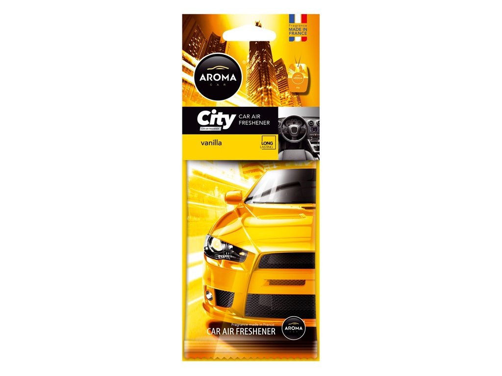 AROMA CAR CITY VANILLA: Moderní papírový osvěžovač vzduchu, vyrobený ze surovin nejvyšší kvality