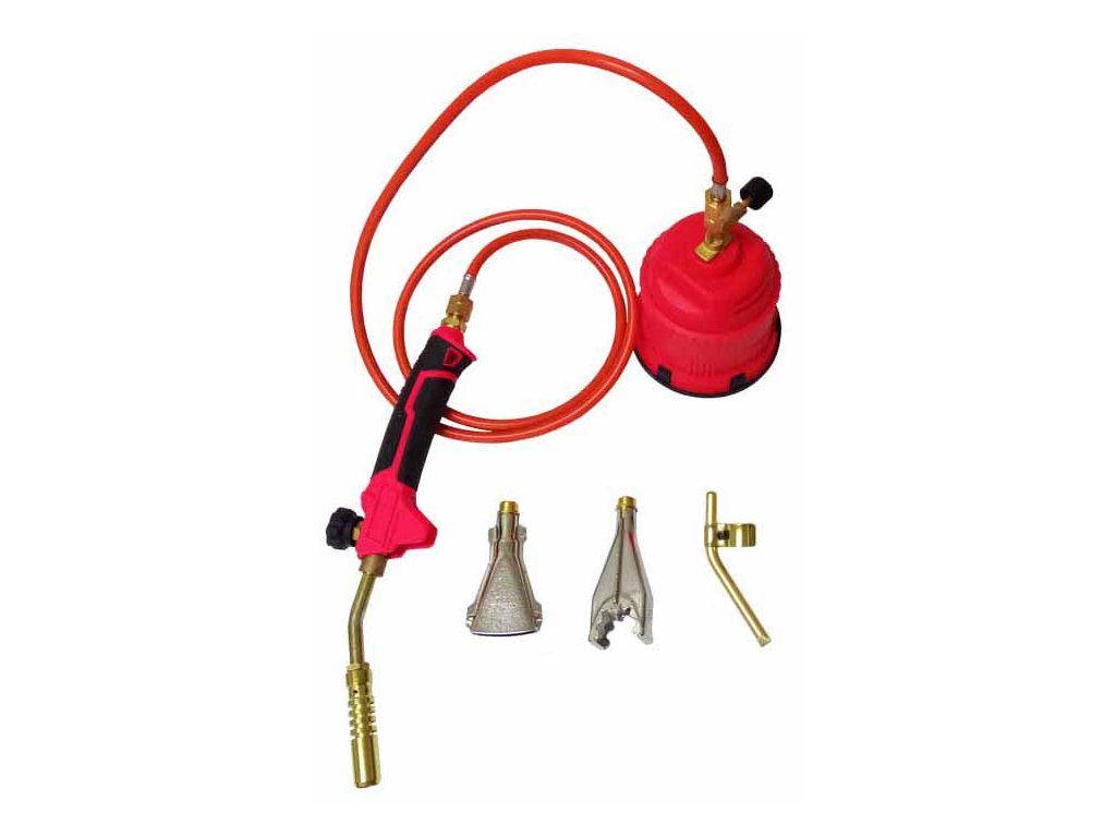 Nástavec na kartuši s plynem je s hořákem spojený gumovou hadicí, díky čemuž není nutné při práci držet celý komplet. Hořák lze navíc zasunout i do hůře přístupných míst, kam by se model s integrovanou nádobkou kvůli své velikosti nevešel.