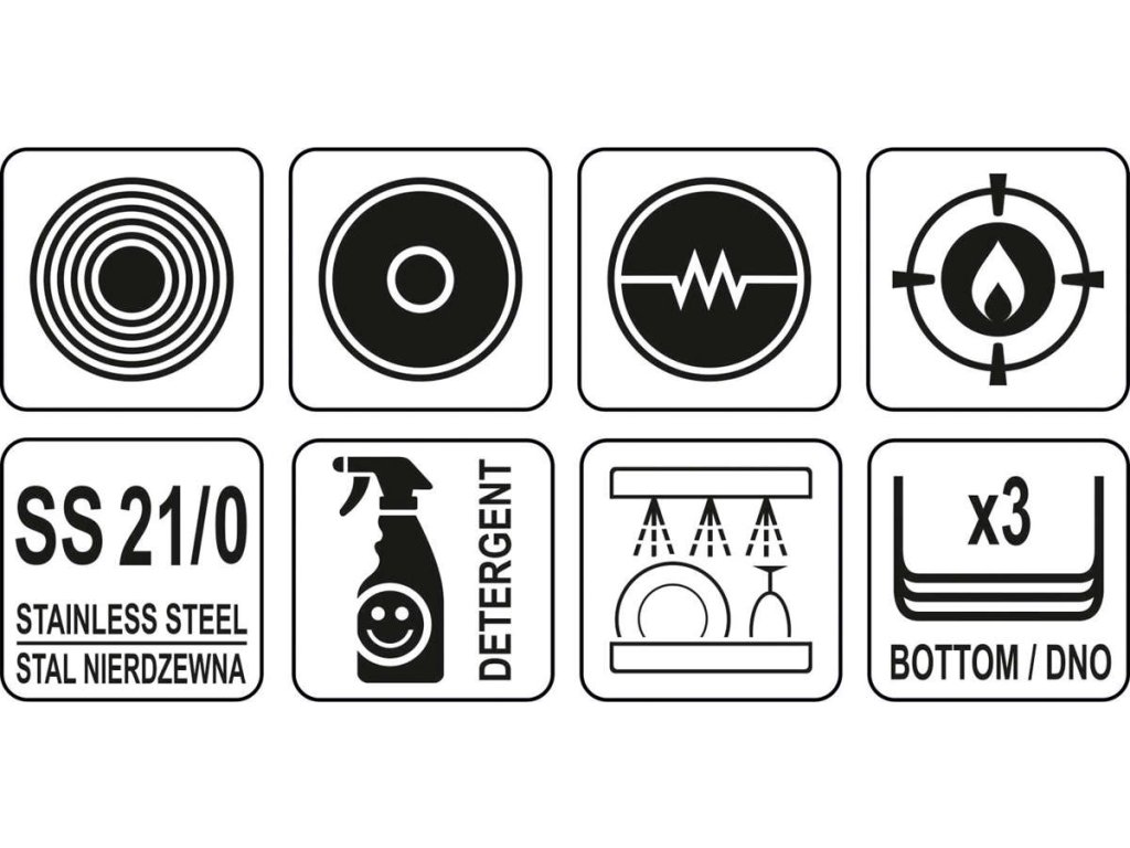 Speciální vložka feromagnetická ve spodní části umožňuje použít YATO pánve na jakýkoliv typ sporáku: