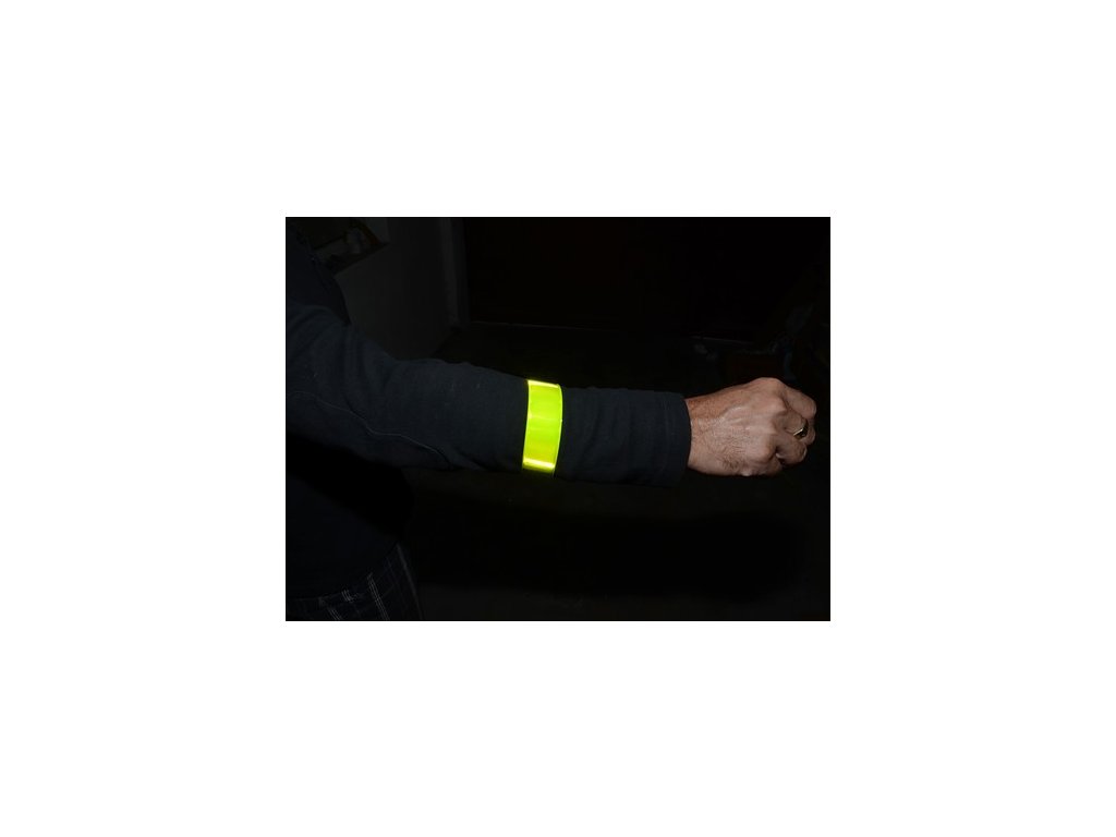Žlutý reflexní pásek - viditelný za každého počasí. Vyroben z pružícího materiálu, dokonale obepne ruku, zápěstí či kotník.