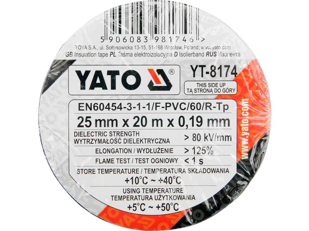 Páska odolává napětí do 8000V (EN60454). Páska černé barvy s návinem 20 m, šíře 25 mm s tloušťkou 0,19 mm.
