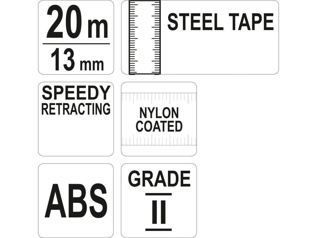 Měřící pásmo o délce 20 m s šířkou 13 mm.