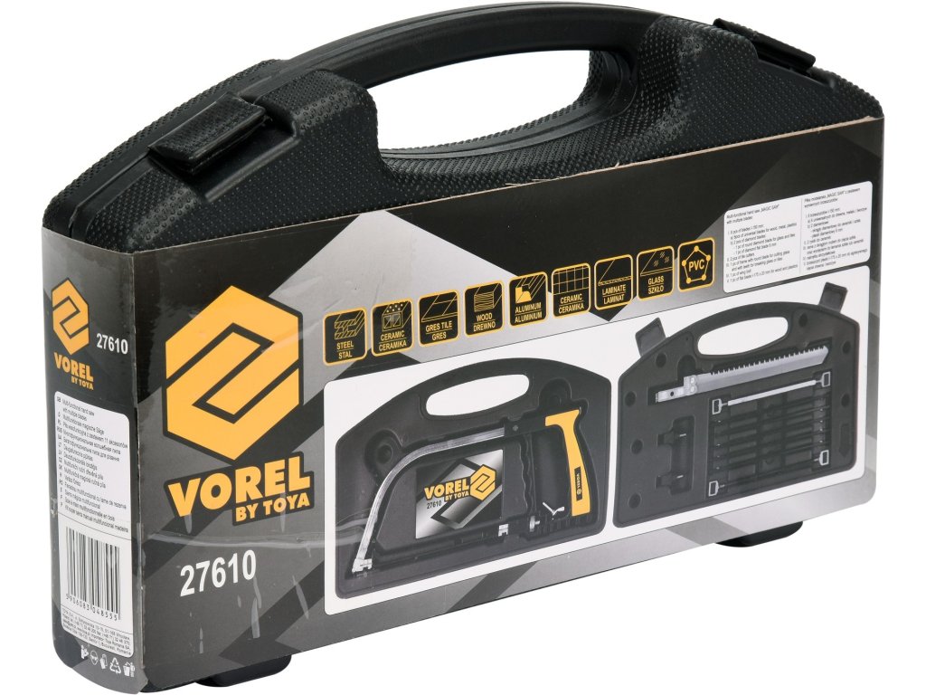 Součástí sady je l-175 x 20 pilový plátek pro agresivní řezání dřeva a většiny plastů, dalších 8 kusů pilových listů, z toho 6 univerzálních pro dřevo, kov a plast a 2 diamantové s kulatám profilem na keramiku a sklo.