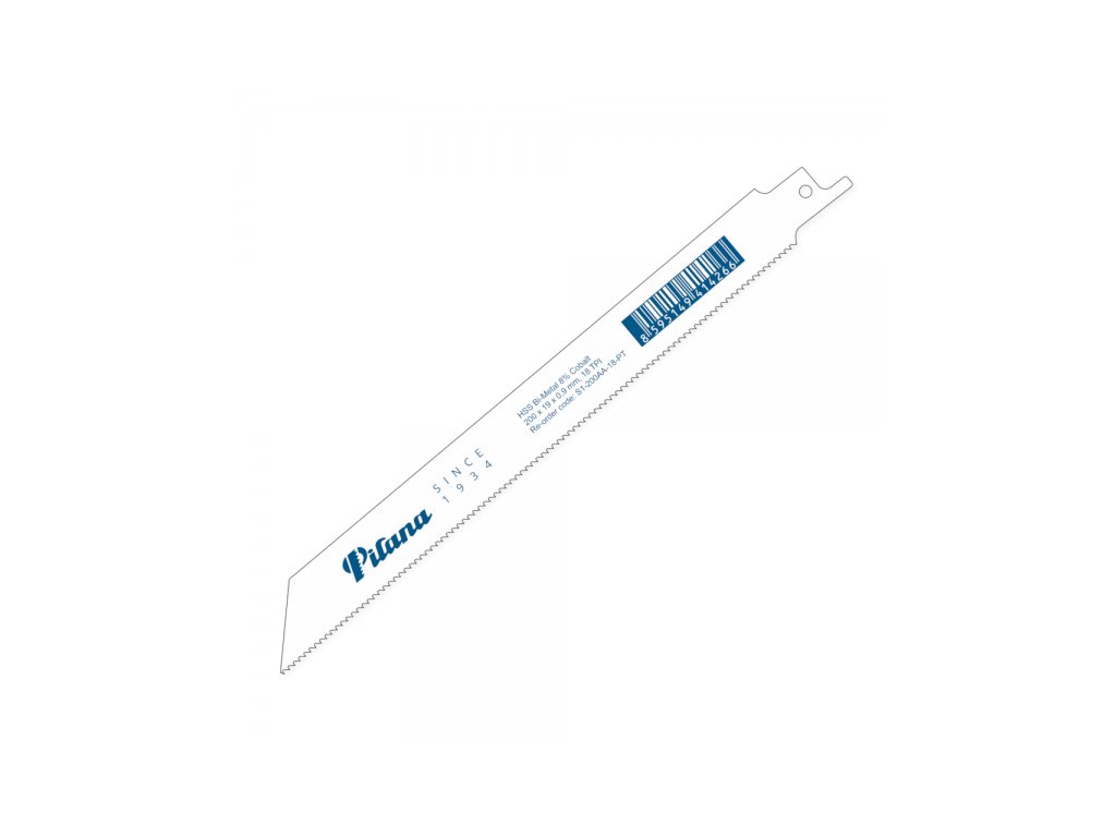 Šavlové pilové plátky – listy HSS bimetalové, pro řezání ocelí, balení 5 kusů – Pilana Vysoce výkonné a odolné pilové listy, určené pro řezání tvrdých materiálů, včetně nerez ocelí. Bimetalová konstrukce z rychlořezné ocel HSS (High-Speed Steel) s příměsí kobaltu pro extra výdrž. Ozubení (počet zubů na palec – TPI): 10/14 TPI: řezání trubek, profilů, tyčí a plechů o tloušťce 5-9 mm 14 TPI: řezání trubek, profilů, tyčí a plechů o tloušťce 4-7 mm 18 TPI: řezání trubek, profilů a plechů o tloušťce 2-5 mm 24 TPI: řezání tenkostěnných trubek, profilů a plechů o tloušťce 1,5-3 mm 32 TPI: řezání tenkostěnných trubek a plechů o tloušťce <1,5 mm Technická data: Rozměry: 150 x 19 x 1,3 mm Typ listů: UNIVERSAL reciproční pilový list – tvar S1 Jakost oceli: 8 % kobaltová HSS bimetalová ocel Tvrdost zubů: 64-66 HRC Tvrdost těla: 50 +/- 2 HRC Upínání: 12,7 mm (univerzál) Barva: bílá (RAL 9016)Doplňkové parametry