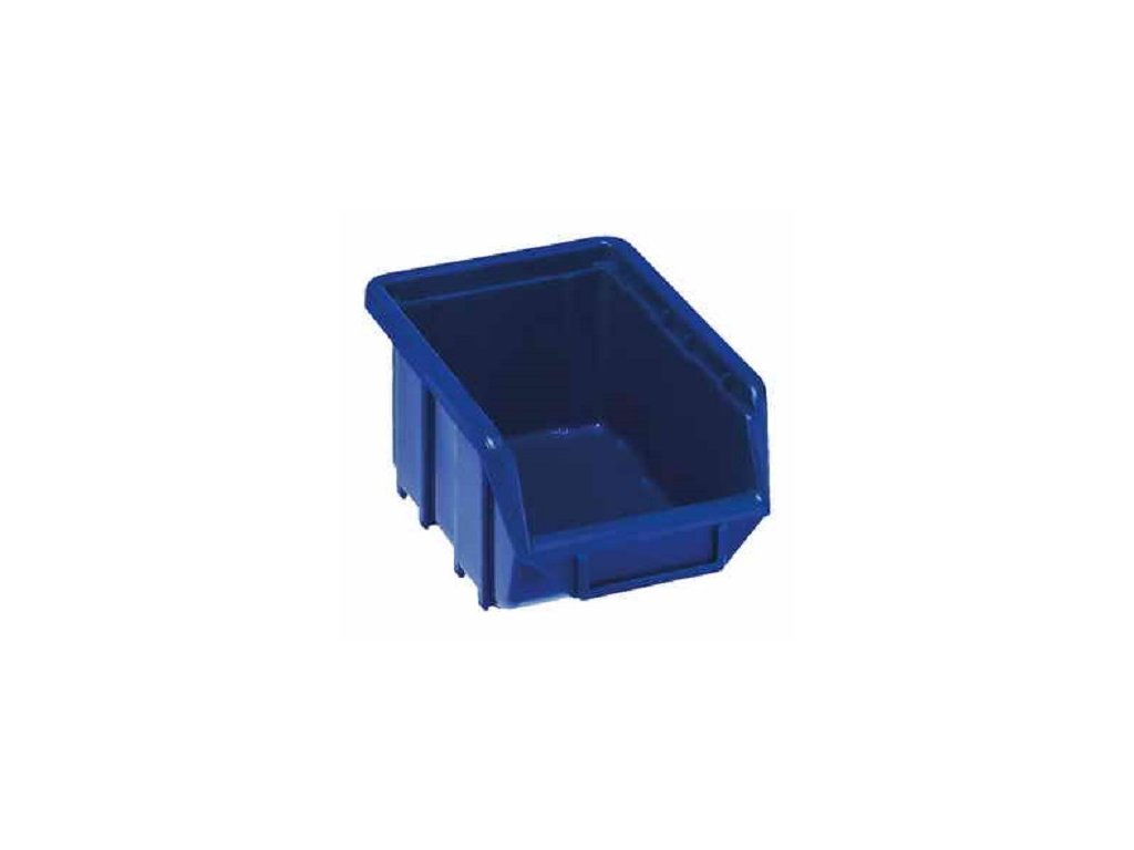 Plastový zásobník – box, modrá barva. Z odolného plastu, okénko na etikety. Rozměry: šířka 110 x hloubka 170 x výška 76 mm Lehce stohovatelný, vhodný do dílny pro uskladnění menších spojovacích materiálů a dalších drobností.Doplňkové parametry