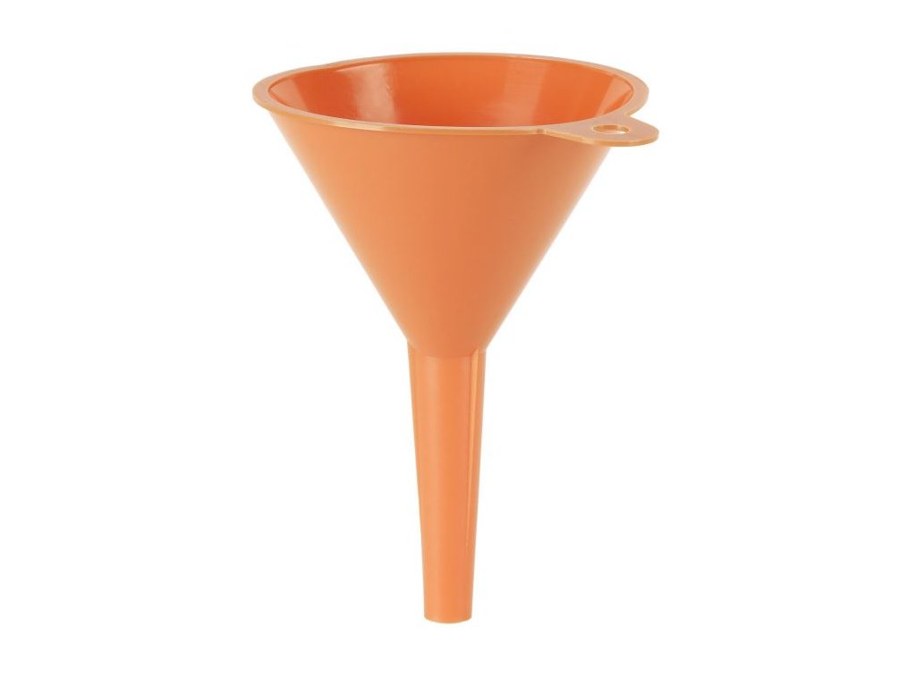 Plastový trychtýř – nálevka PRESSOL 02 365 Vnitřní průměr: 150 mm Objem: 0,7 litru Určeno pro nalévání různých kapalin v autoservisu, dílně, domácnosti a na dalších místech. Vyrobeno z materiálu HDPE (polyethylen vysoké hustoty): odolný vůči oleji, kyselinám a naftě, vhodný i pro potravinářský průmysl. Závěsné očko umožňuje pohodlné držení nálevky při práci. Oranžová barva.Doplňkové parametry